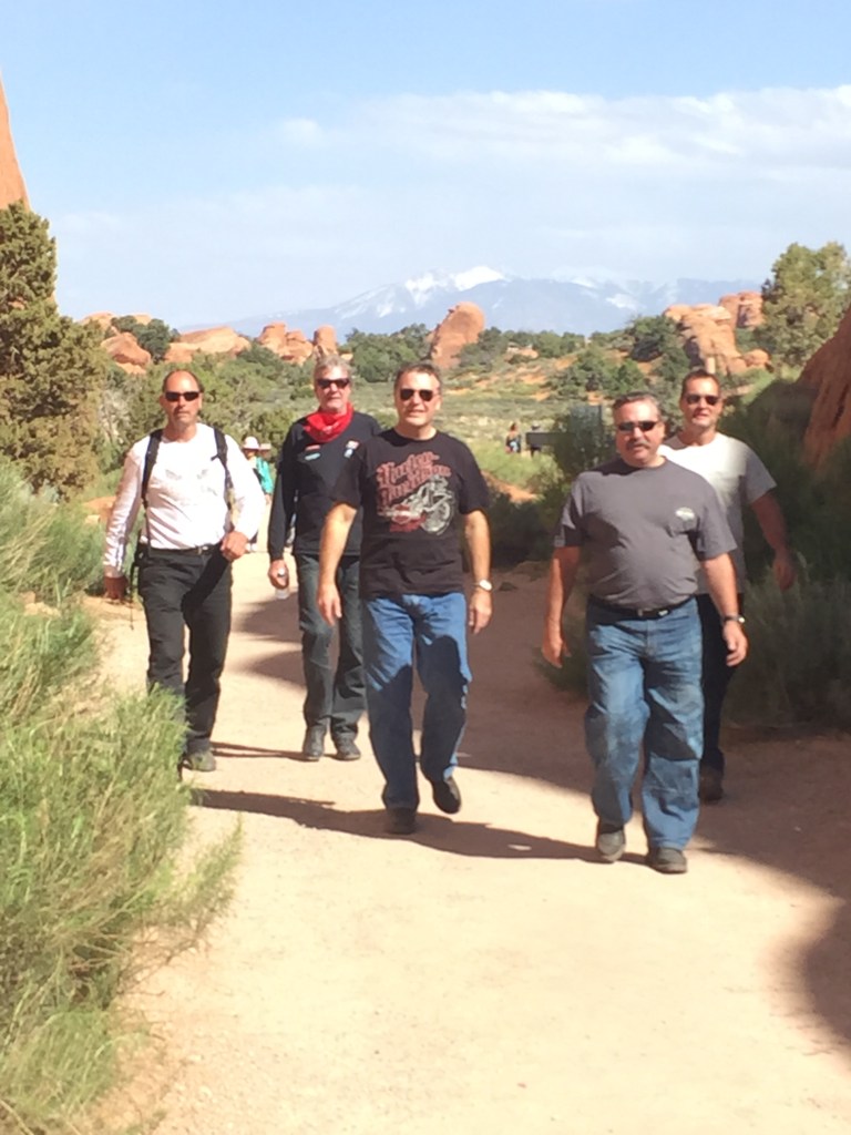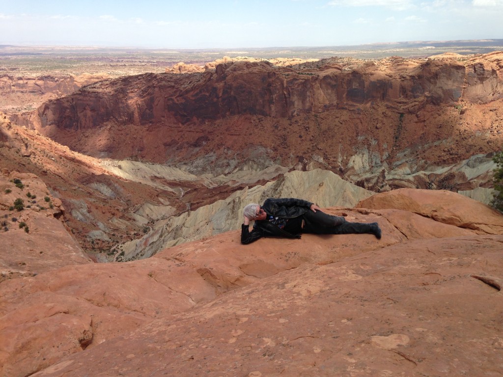 Back to Moab for lunch at Spoke cafe. Waitress called Dwan? Time to get out of here. Next stop was Arches NP. Delicate Arch – another walk! This is exhausting and the reason God made wheels. Now to Landscape Arch. More photos and Foxes have identified a disturbing aspect of Russ in front of the lens on a very frequent basis. He lies down on anything. We are of the view that he is using this trip to promote his modelling career given he is unemployed. We are watching closely. Back down to Balancing rock, 3,500 tonnes. A great view of snow covered Lasal Mountain .Back to the Moab hotel by 6pm.