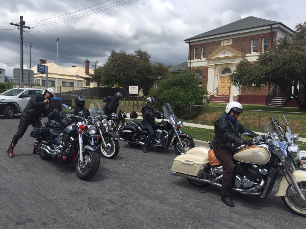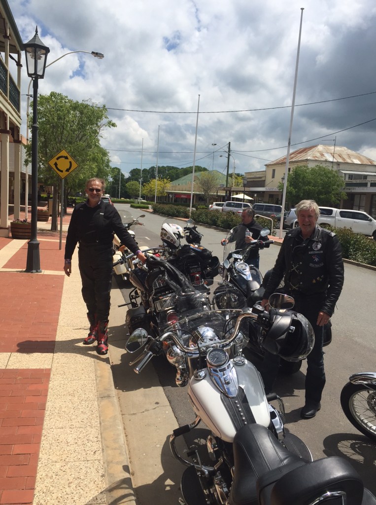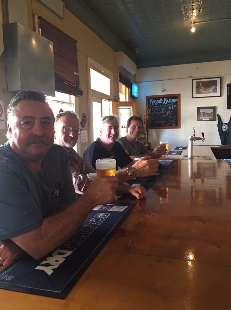 We rode HARD and paid scant attention to the lovely historical towns of Crookwell and Cowra. Gibbo yelled “I love Crookwell” as we rode straight through at pace. We had lunch at the pub in Cowra and then onto Canowindra. We checked into Eddys (a former Convent School) and headed to the Royal Hotel for rehydration (Ben Hall, the bushranger, held this pub up in 1863). We walked straight into a tsunami of children stalking the streets looking for Halloween lollies. But there was no one around. The pub was empty. We learned that 2 weddings and a 21st will do that to Canowindra so the town was ours for the night. Dinner was at the Old Vic Inn and again we had it to ourselves except for one woman who obviously wasn’t invited to any of the gigs. A few drinks tonight back at Eddys.