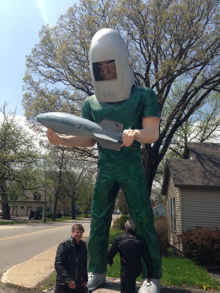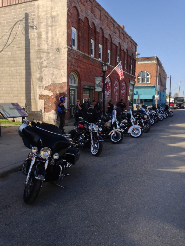 Lunch at Pete’s Pancake place (no Michelin hats here). Someone had a Reuben? (note, decided Max looks like Ruben Kincaid from Partridge Family). We rode on and had various stops at curious little places selling souvenirs. The highlight was Atlanta, Illinois. A step back into the 50’s. A handful of people but a quaint and pretty town.