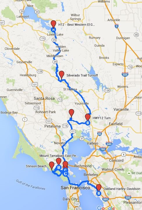 Final day of a great tour.Happy to be out of Clearlake, a town well past its halcyon days (if it had any). Weather is fine as we head to San Francisco via Napa Valley. The entre into Napa valley through the Robert Louis Stevenson state park & over Mount St Helena was magnificent. Sun poking through the deep canopies. Lots of broad winding road.