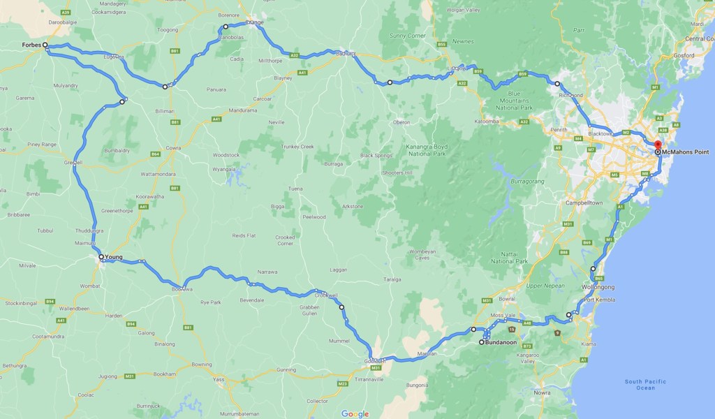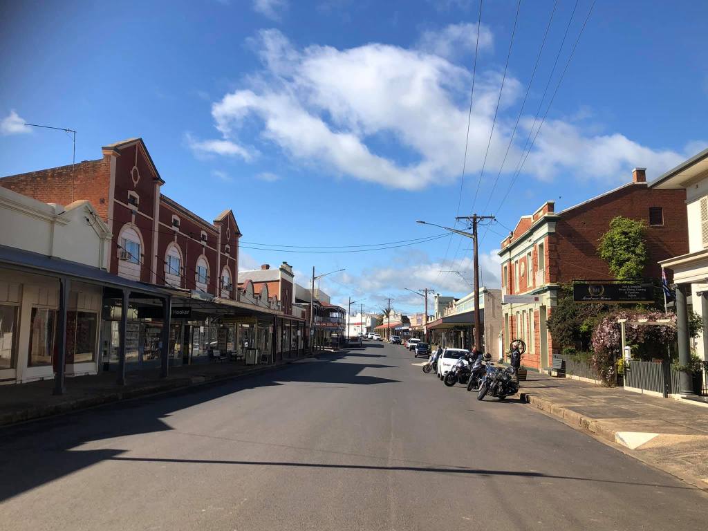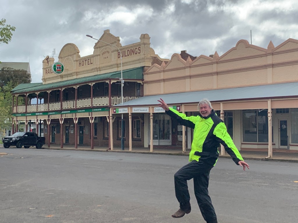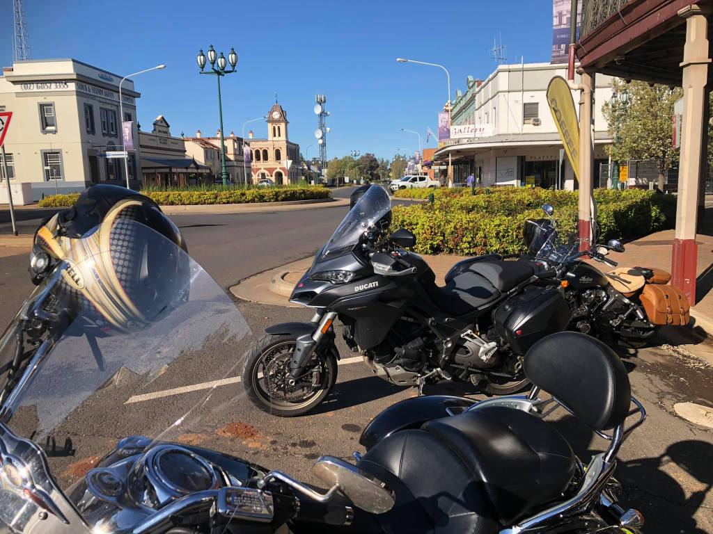 Out of Forbes at 8am and heading to Canowindra for breakfast. No one on the road & scenery unreal. Upon arrival…it’s a ghost town. We’re “struttin’ into town like we’re slingin’ a gun”, riding down the Main Street in formation. A mangy dog came out to check us out. Dismount and into the iconic “Garden of Roses” for breakfast. The trip home continued without incident. To Orange, Bathurst, Oberon and down the Bells Line of Road from Lithgow.