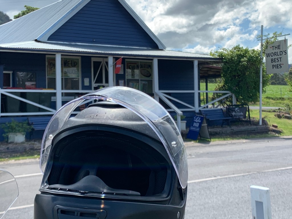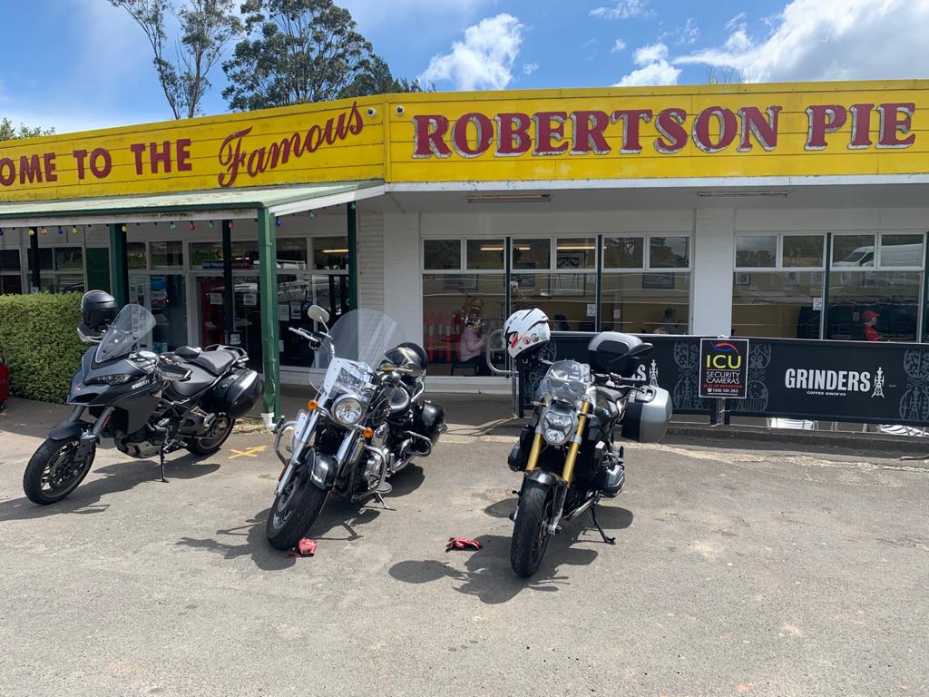 We spent the best part of the next few hours gliding through the beautiful Southern Highlands, drinking coffee and eating pies. Lunch at Schmokin’ in Berrima: a restaurant attached to a bike workshop and clothing outlet. We invested in a t shirt & went across for lunch. Unbeknown to us, lurking in the restaurant was a young lady who introduced herself as the head of the New Berrima Society, aimed at regenerating the life of the town. After a short conversation, it was apparent that she had realised we were more than just ‘crusty bikers’. Maybe it was because Russ & I told her we were amazing musicians in an amazing band. When we told her we cost nothing she became animated. Rusty Nails could be playing Berrima in the near future!