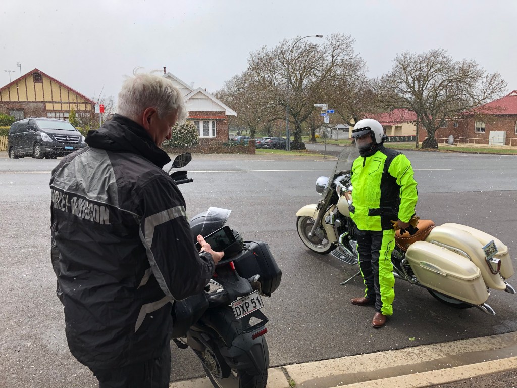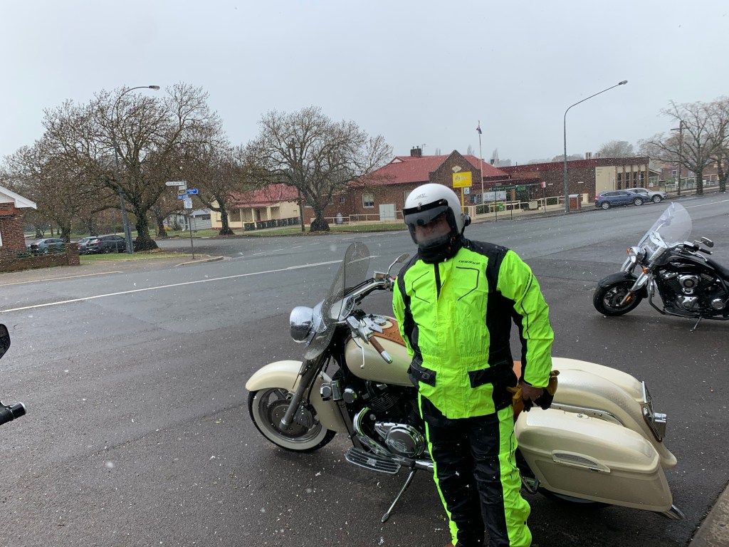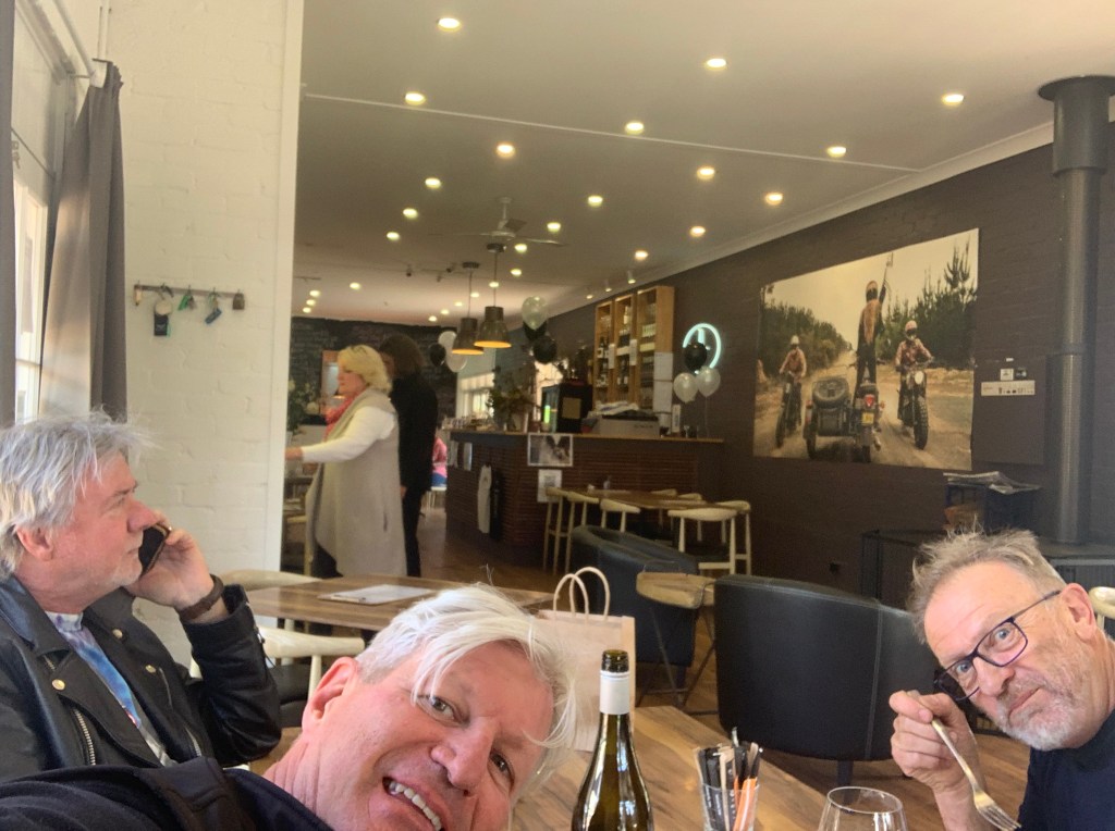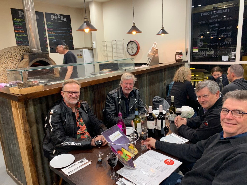 Weather starting to move in and its getting cold so the decision was taken to head straight to our destination, Bundanoon, about 20 minutes away. We started the engines and it bucketed down. It was a shocker. Creeping along without visibility is never enjoyable. Arrived at the Bundanoon Country Hotel, showered and secured the fireplace in the lounge for a couple of G&T’s to freshen up .It was at this point that the tour took another disappointing turn. Here it from Tony himself, “Well boys it turns out my plan to hire bikes has gone to shit! Collected the bike from Annandale this afternoon and it is a pile of crap. Old, super high km’s and nothing like the GS in Europe. Nothing else available in the fleet. Rode it home to see if it would be OK. Crushed nuts and just a horrible experience. Sad to say I will not be joining you as no way I could ride this for 2 days as 1 hour was enough. Will be returning it tomorrow.” Luckily, we are not in Sydney so that we don’t have to not be a support group! Dinner at the Bundanoon Hotel tonight with Russ’ sister Helen & husband, Paul.
