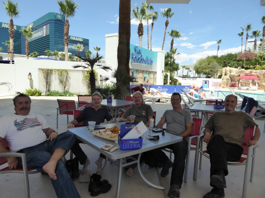 With no rooms available we did the obvious thing, hit the pool bar. One needs constant hydrating in the desert. The service was superb (friendly waitresses ) so we hung there for a couple of hours. Lunch was compliant with Boxy’s health diet, a full tray of fried seafood. We checked in at 1pm & fell asleep. Dinner at the Chinese restaurant at Mandalay Bay and then off to our show, Raiding The Rock Vault. Amazing! Lots of famous oldies performing rock from 70/80’s. After the show, we returned to the bar for a nightcap. We are getting really good at this! Andy Riches arrived so had a few more with him. Russ & Mike (the debutant) have gone on a tour of Vegas (details tomorrow). Rest of us gone to bed. Zion NP tomorrow.