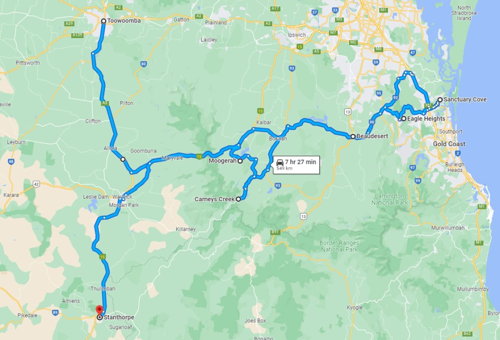 Day 44 31/5/22 Toowoomba to Stanthorpe via Sanctuary Cove 559 kms