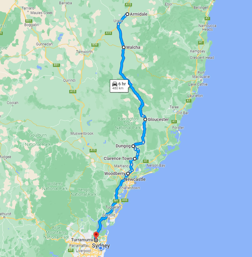 Day 46 2/6/22 Armidale to Sydney 475 kms