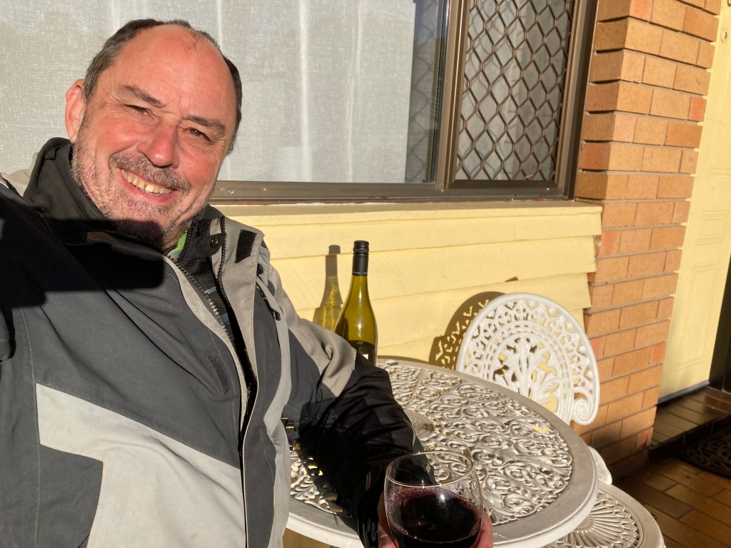 Endured 80km/h head winds all the way into Armadale and rode into our motel. Russ sat in the shower for 30 minutes and turned around his hyperthermia while Hydro sat in the sun with a cabernet merlot. Dinner at the White Bull Hotel which has been the scene of many crimes when here before.