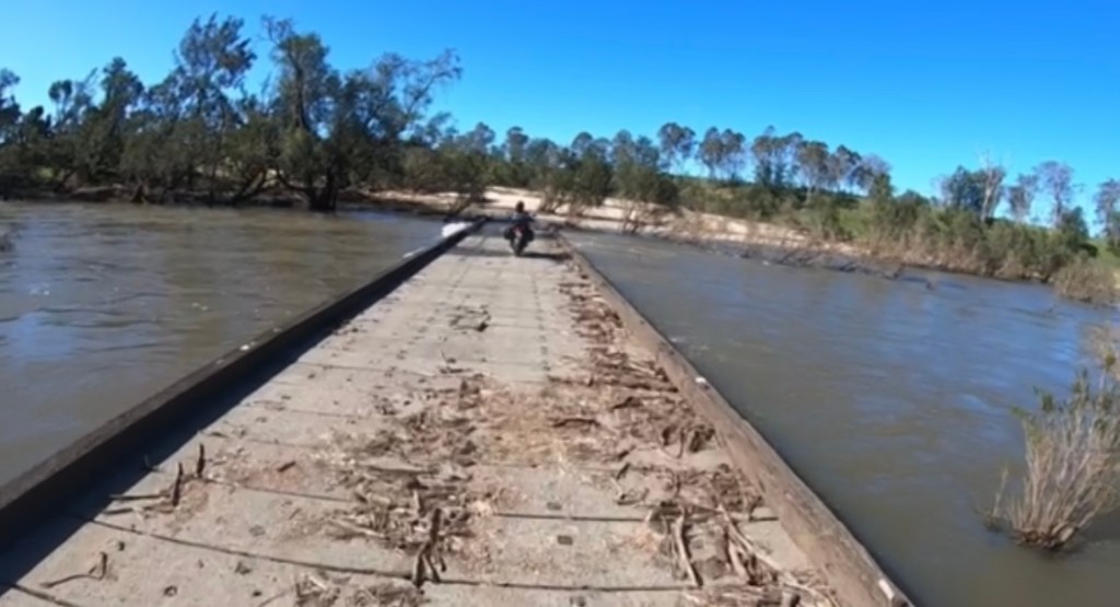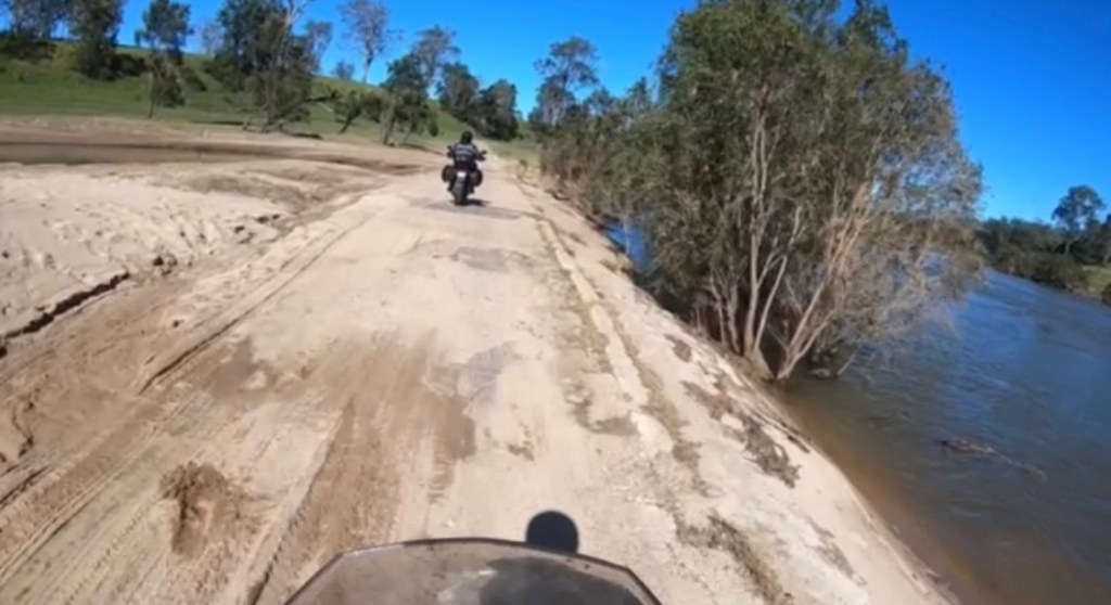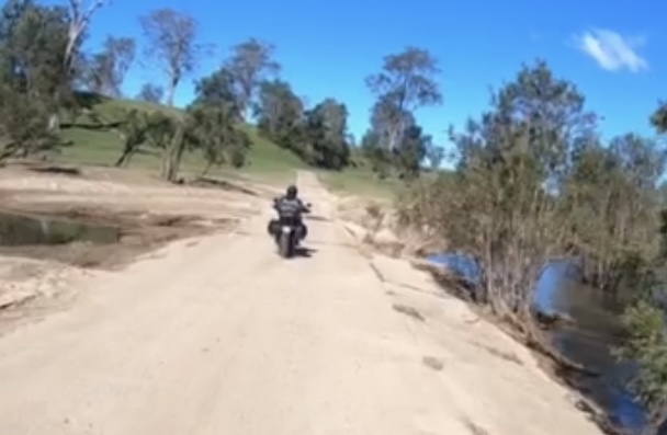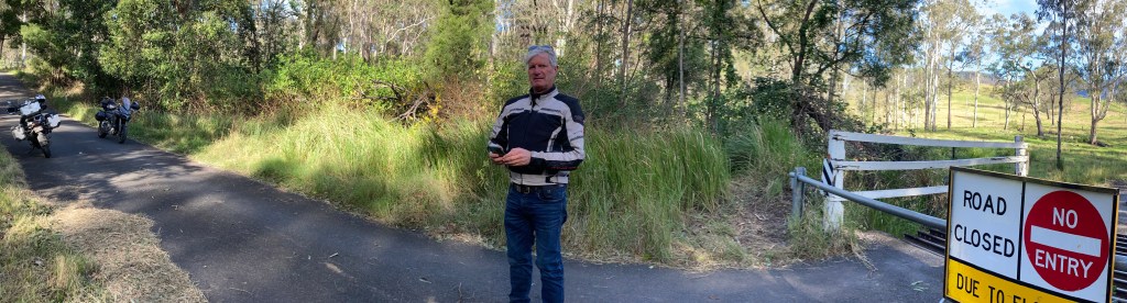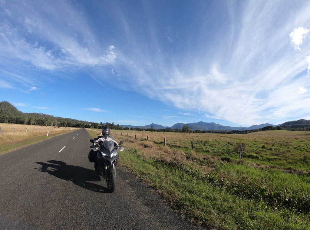 Just when the trip is supposed to wind down it winds up like The Gibsters watch. We left the air bnb (which was a memorial for someones parents) and motored on in to town for what we were told by the taxi driver last night as the best coffee house in the Granite Belt. To go with the coffee all we wanted was a ham and cheese toastie…..but no the only thing on the menu was a Pulled Pork Asian Infused Toastie with Cheese…..seriously in Stanthorpe? Hydro was hungry so he ordered a couple and while it seemed creative wasn’t not good for the digestive situation on a long ride. Took off down the Bruxner Highway and hung a right down plains station road. What a blast…narrow road through amazing green pastures and to top it off a river crossing over the subtlest of bridges with water bubling through the wooden slats. Hydro was in his element……it doesn’t get much better than this…but it did, As soon as Russ completed the river crossing he hit sand. Doing his best Boxy Barney Rubble he got through the first barrage. Knowing know how the Ducati works with the two pistons (coz the Gibster has been tutoring him for 38 days), Russ increased the revs to 7000 which gives it a gyroscopic impact keeping the bike upright while he plied through the sand. Success and press on regardless. The day was cloudless and the scenery spectacular as we winded our way into Grafton. Russ told Hydro not to stop here coz I’ve been here before when Mike G had a bike issue. Maybe we were in the wrong end of the town, but it was kind of weird, so we just swung around onto waterfall way.