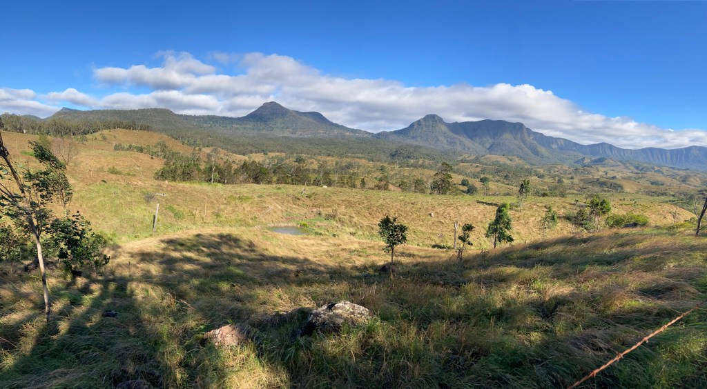 Despite the fact fact we are only 153 kms away from our last destination we have covered a lot of ground through amazing conditions, Up early we had intended to use freeways to get to the gold coast to visit Russ’s mum, but there was carnage on the M2 due to a car crash, so we went the back way via Cunninghams gap and Mt Tambourine, It took the same time but at least we were moving. Hydro did the dog whispering thing with Suzys dog and after a coffee and good conversation we were off again.