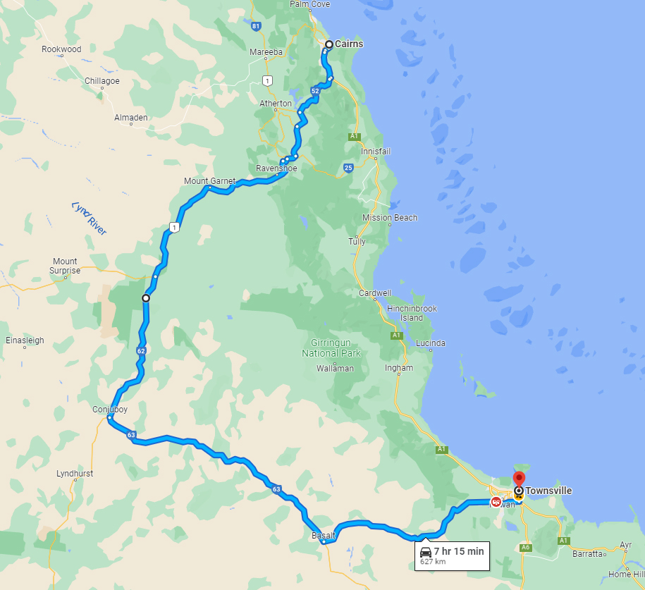 Day 42 29/5/22 Cairns(QLD) to Townsville(QLD) via inland route 486kms