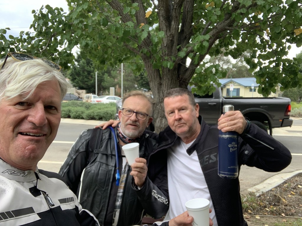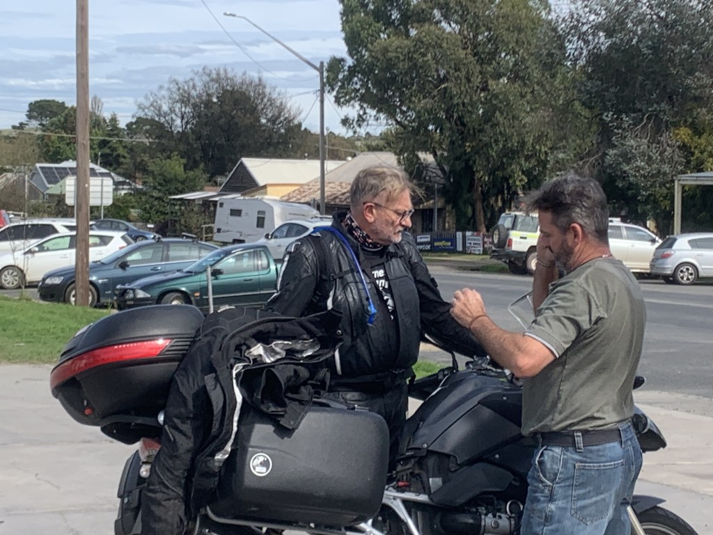 A quick lunch at Port Fairly and a fuel stop. As usual Russ drops his bike in front of a maximum audience at the servo. Gibbo doesn’t even bother to get off his bike to help coz he has spent the last 5 minutes adjusting his leathers, and just tells the first responders, “He does this all the time…..bloody attention seeker”.