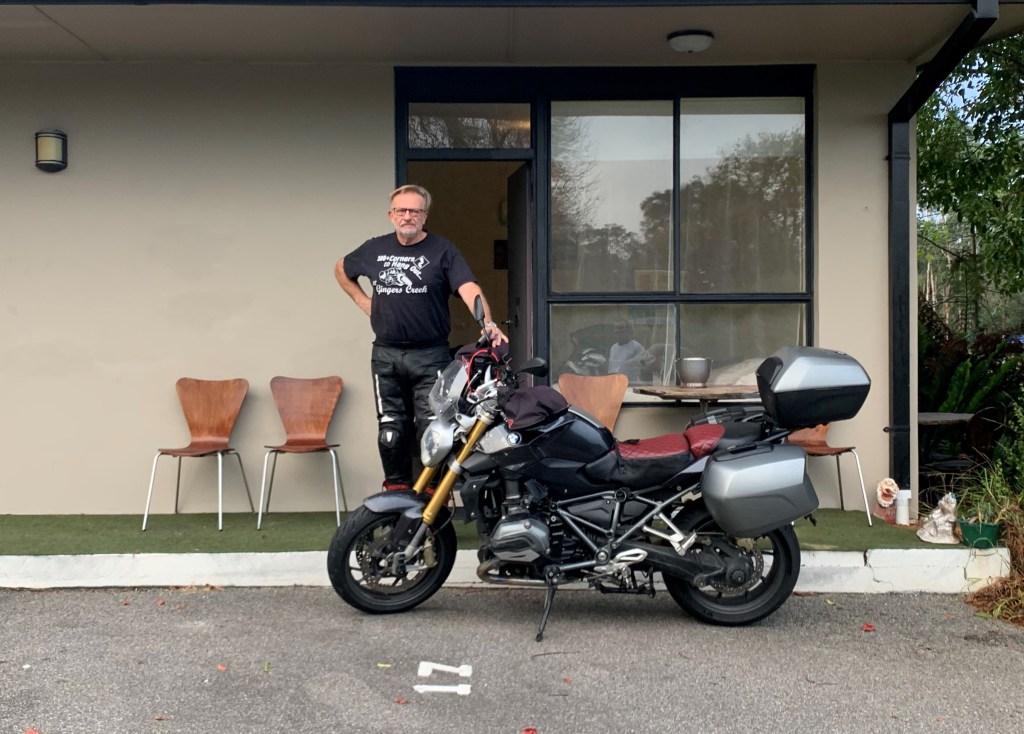 Russ and Gibbo met at Heatherbrae Pies at Sallys corner, the scene of many Fox Crimes (the empty tank of petrol, the defective battery etc…no names mentioned) where we had a strategy session which lasted 10 minutes. We the hit the road through Goulburn down by Tarago and then the Kings Highway and stopped in Braidwood for Petrol. At this point Gibbo was mobbed like a pop star, not because he was one; but a group of Bikers who had a disabled BMW GS thought he could resurrect their situation. At this point Gibbo turned to Russ and said “Whatever you do don’t say I’m a Rolls Royce mechanic unless I get the bike to work” . Tight lipped Russ just sat there adding no value as usual when it comes down to breakdowns, flat tyres, battery issues. Gibbo quickly regrouped and said “ Mate, this is an after market ignition system that hasn’t been attended to for a number of years so you will need to call a tow truck…..See ya”, and we were off again. Down to Batemans Bay to pick up Kevinn with a double n and then through the luscious dales of south east NSW to the seaside town of Merimbula where we had a great Wine and Tapas dinner and were in bed by 9 after an exhilarating first day.