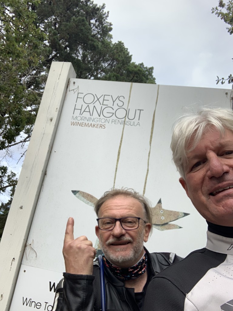 After a coffee sesh in Mornington we took a coastal cruise around the bay and then headed up Arthurs seat (think Stelvio without the push bikes) where finally Kevinn got his money shot which he will say was the start of the trip. Russ said he could photoshop the harbour bridge. We were seriously burning daylight by this stage coz it gets dark early down here, so we went with great haste to Foxy’s Hangout for a great wine flight. How good again… we signed Gibbo up for membership so we didn’t have to pay for the tasting.