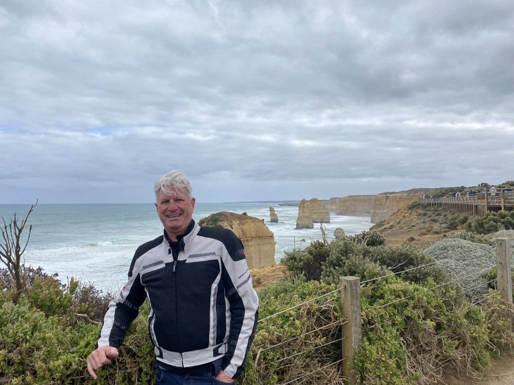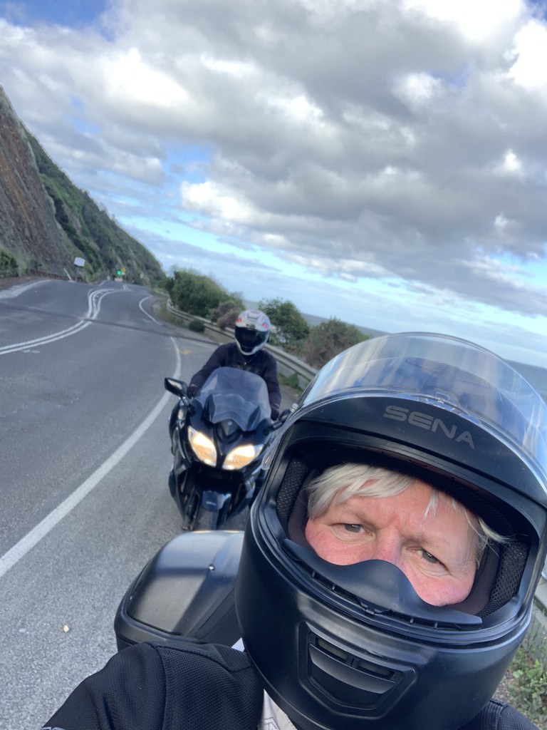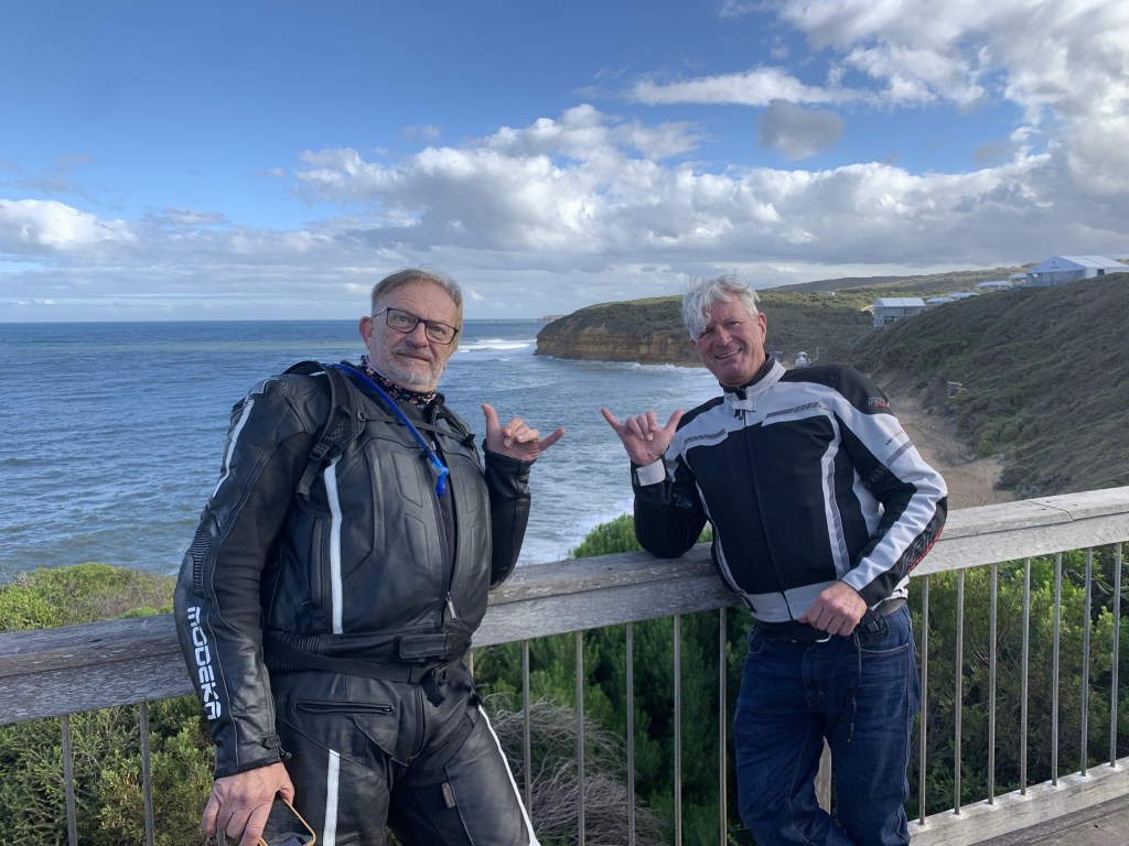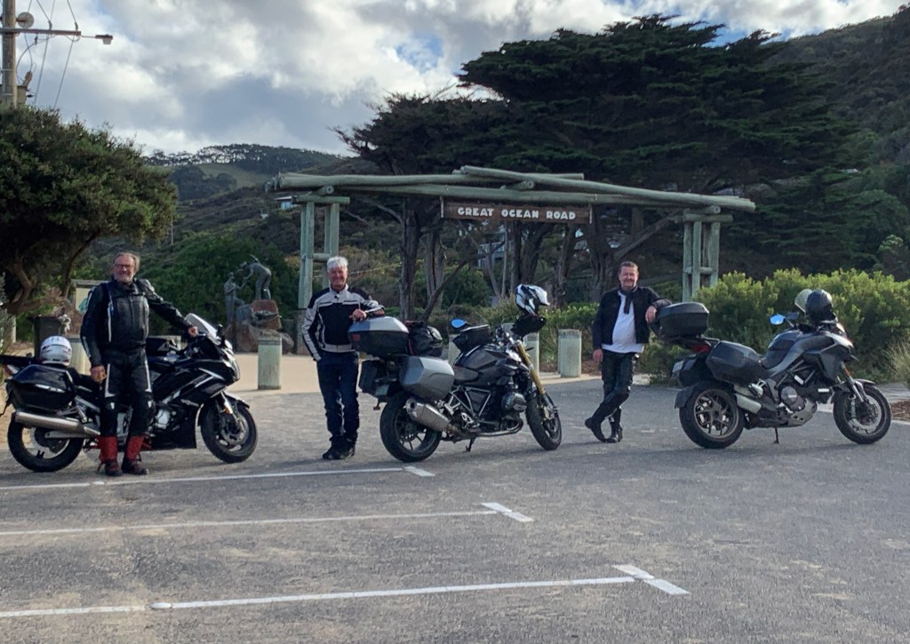 We then hit the Great Ocean Road proper. After the requisite photo ops at the big sign (note that we all need to check for helmet hair), Gibbo stopped on the side of the road. After a minute Russ knew what he was up to……he was creating distance between him and the car in front. Unbelievably he got 5 minutes worth, suddenly he was off and Russ and Kevinn didn’t hear from him again until he rang and said where is the motel.