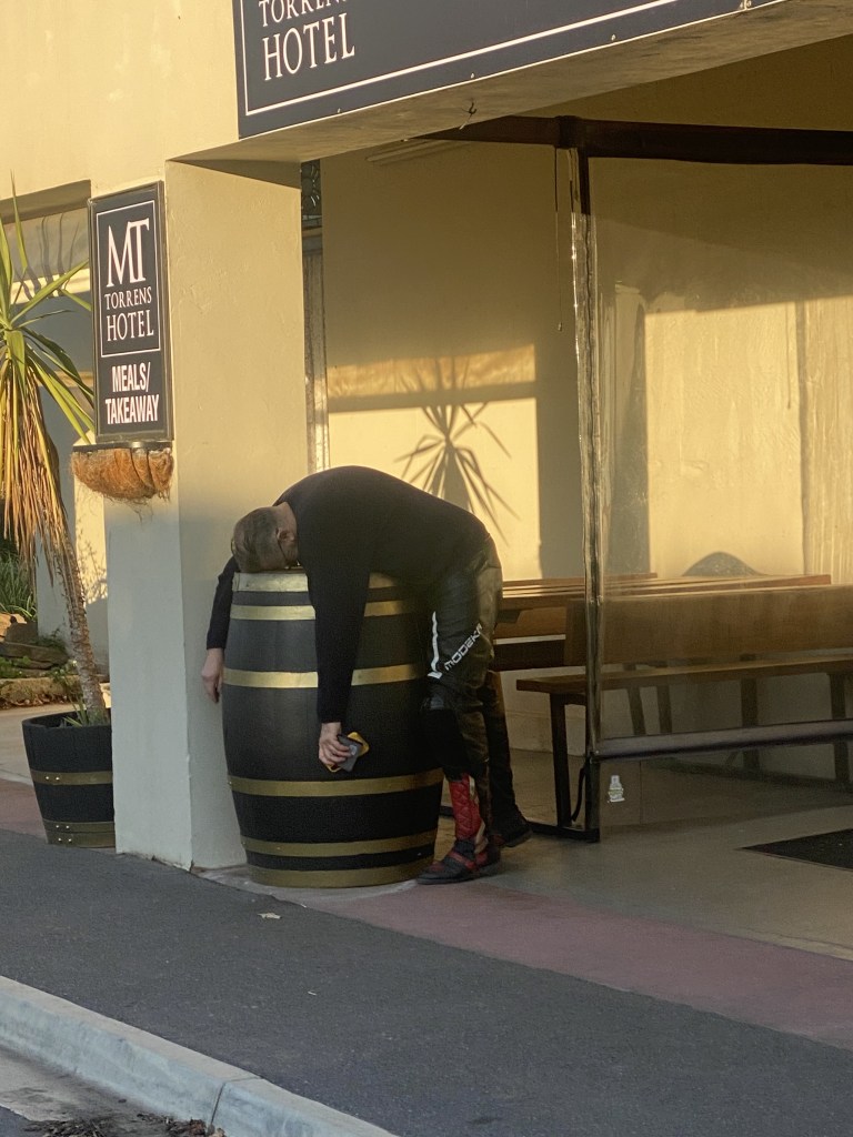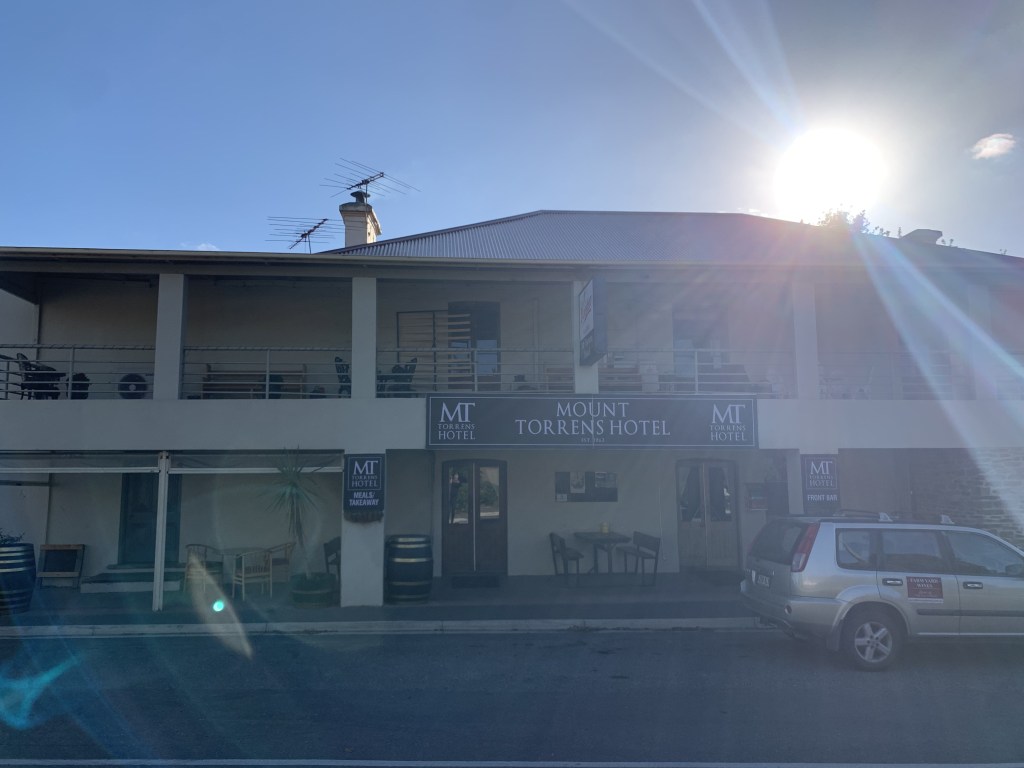 Too much chewing the fat, the tour had to move on, so a quick drop in at D’Arranburg for some photos at the Cube, then a one hour run to our accommodations at the Mt Torrens Hotel. What a great place. 170 years old, and the publican Angie was sensational. No TV no ensuite no heating, but what a place. Russ of course ended up with the tiny room but this was a good compromise coz originally there was only 2 rooms and after Bombala he wasn’t sharing again.