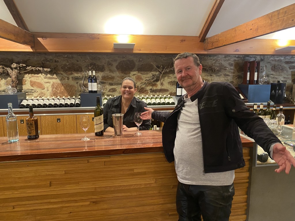 Back on the bikes we crossed the Murray River at Wellington by ferry and had a blast along the Fleurieu Way to McLaren Vale. Russ was allowed to lead this bit coz it was complicated. How good was the tasting at Wirra Wirra. Gibbo demanded the Boss tasting (Nothing under a $100 a bottle). Russ and Kev were probably just happy with the Church Block, but Aandy is bigger than us.