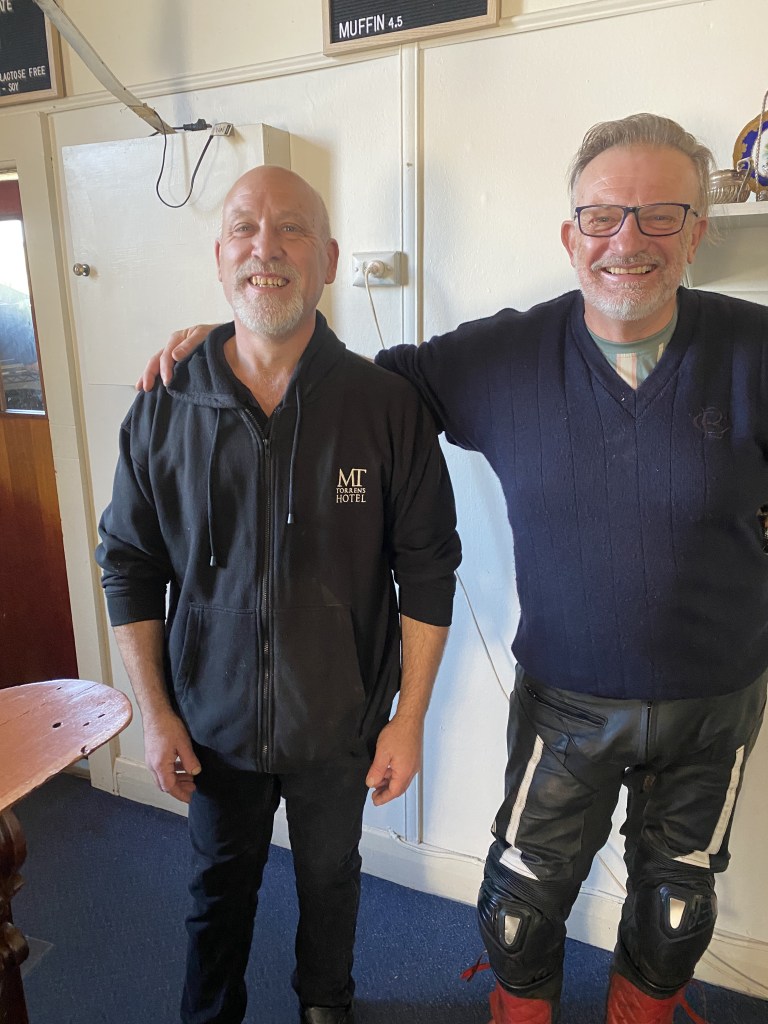 Beautiful morning in the Adelaide Hills today as the boys readied themselves to cross the Goyder line, but before that we had to say goodbye to our hosts for the last two days at the rustic Mt Torrens Pub. Dean (John Malcovich) made us a slap up breakfast and wished us bon voyage. Aandy had to get a photo given that he was a doppelganger.