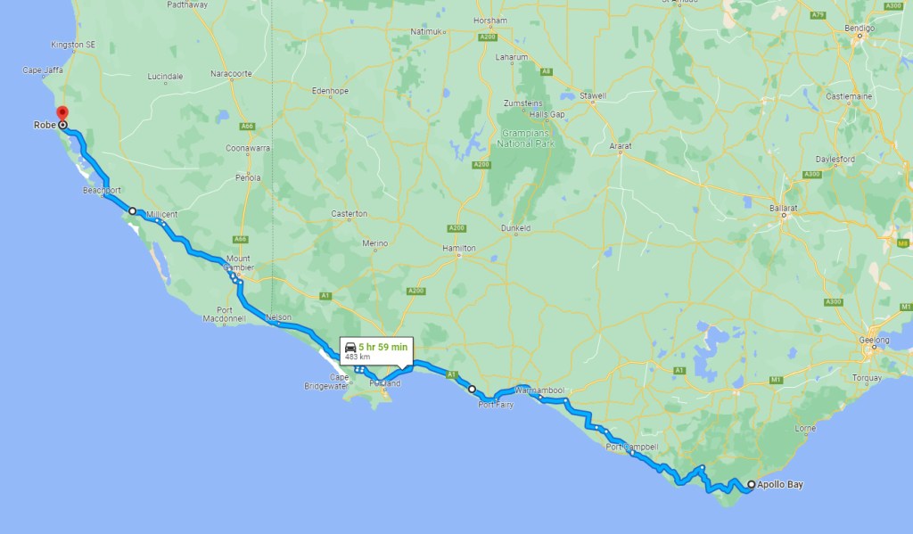 Day 4 – 21/4/22 Apollo Bay(VIC) to Robe(SA) 490kms