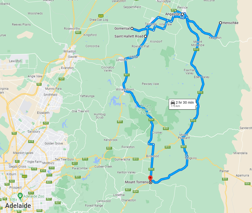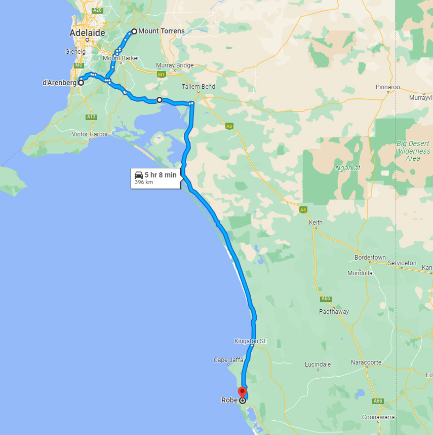 Day 5 Robe(SA) to Mt Torrens(SA) via McLaren Vale 22/4/22– 430kms