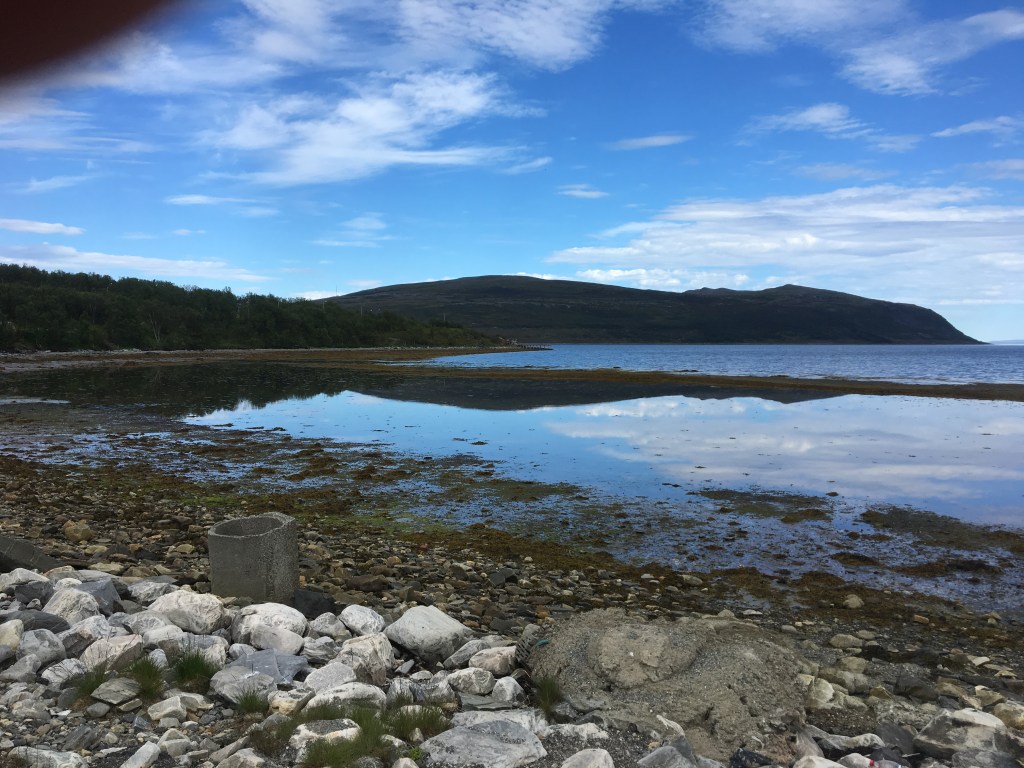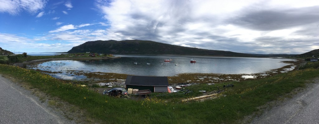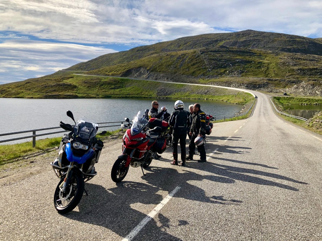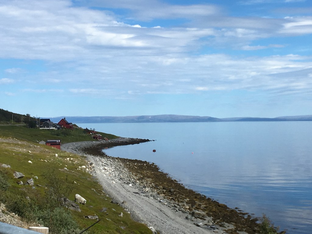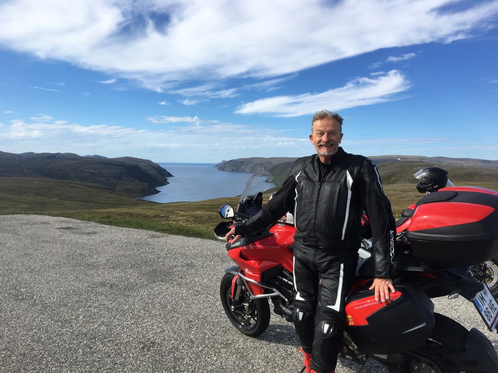 The last 15kms up to Nordkapp is a long winding road through barren mountains with glimpses of the North Sea. We stop at the top for some photos. The riding today has been one of the best. We understand that we have copped great conditions. Typically, it’s windy, cold & raining up here .Back down to our hotel. There is a crisis. The only wine available in the hotel is Hardy’s Cask, red & white. We have brought some of our own so the ‘stash’ of illicit wine & whiskey is unloaded while we watch Belgium v Brazil with a bunch of Germans. Gibbo has gone wandering after dinner & imprisoned by the local Sami.