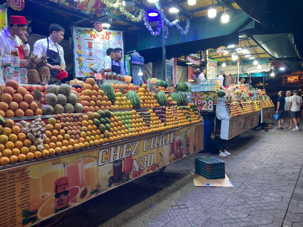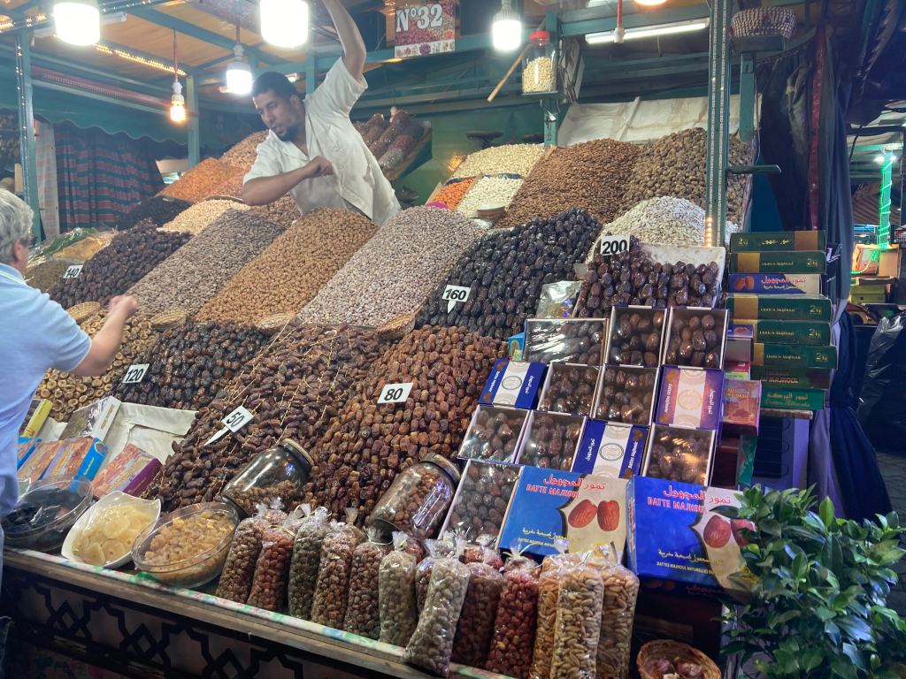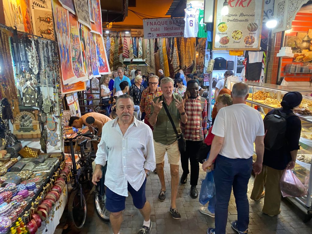 Into the Medina for dinner tonight. A wonderful rooftop restaurant, Cafe Bazar. After dinner, a walk to the famous town square. It’s a huge space and pulsating with a lot of energy, music.