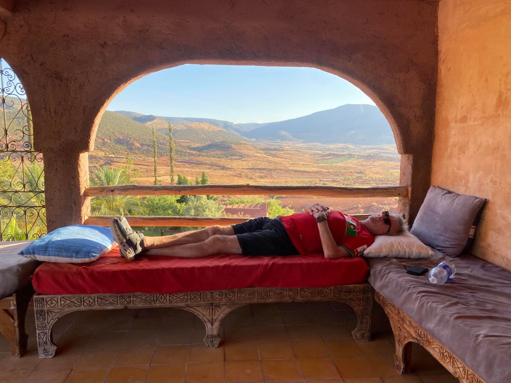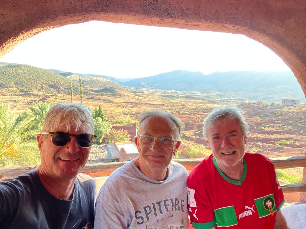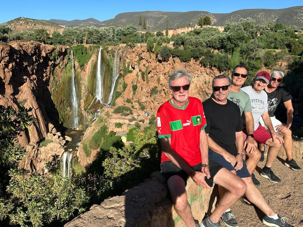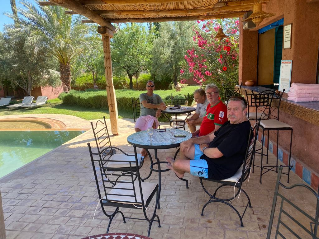 A couple of hours in the pool. Not just any old swim. We took on the might of the local young Moroccans to a swimming race and gloriously thumped them. Singo is the secret weapon. Swimming crooked down the pool to knock out the competition. Russ & Andy then cruised into 1st & 2nd spots. High fives all around! and then a walk to the Cascades before dinner. Pre-dinner drinks on the rooftop. Dinner at the Hotel.