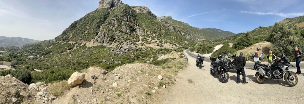The topography now changes. Pine forests and cool air. Leaving those behind we trek across the mountains through one poor village after another. It’s about survival. One chap who wandered into the road was almost collected by Russ. Only skilled aversion riding saved that bloke. All we see is men huddled together doing…..nothing. Paradox. The beautifully laid out fields in the valleys (rows of Olive trees & terraced hills) versus shitty towns. Above my pay grade to understand how this country works (or doesn’t).