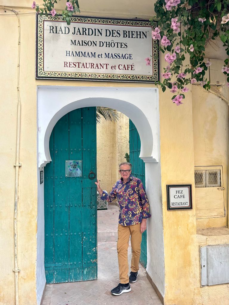 Tonight dinner was at Cafe Fez Restaurant in the Medina. It only took 3 locals to find it! Gibster looking particularly colourful tonight.