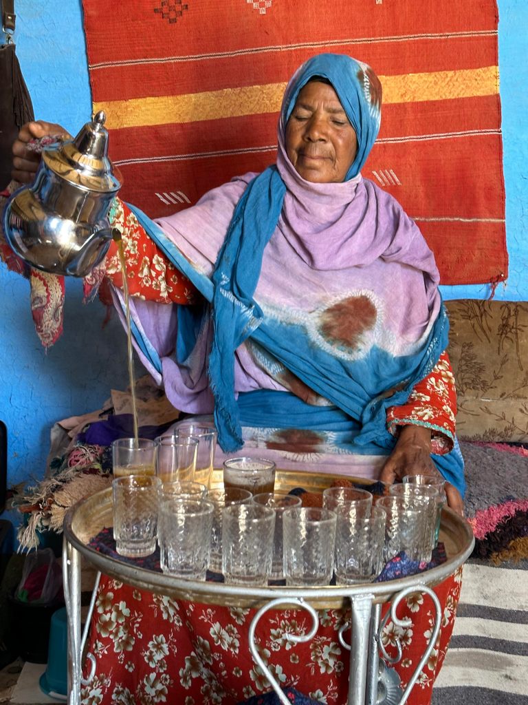 Strong wind as we dash across a desert landscape. Stop for a cup of sugary tea and a visit to underground canals. 2500kms of these tunnels dug manually. We acquire head scarves and Hana provides a lesson on tying them.