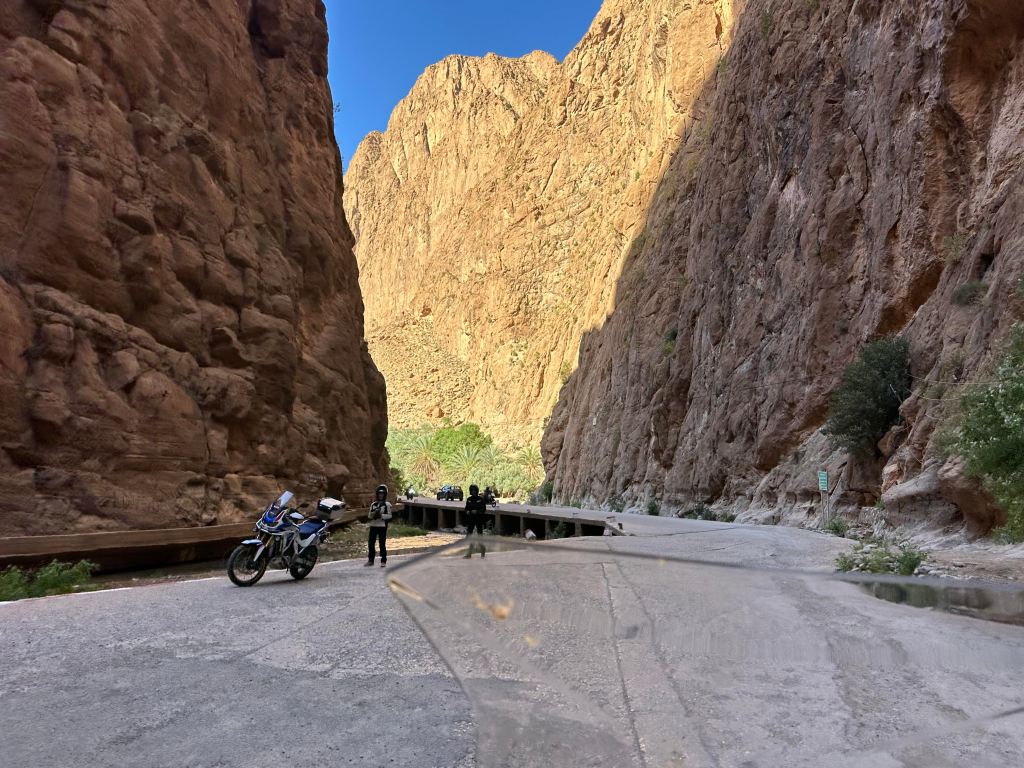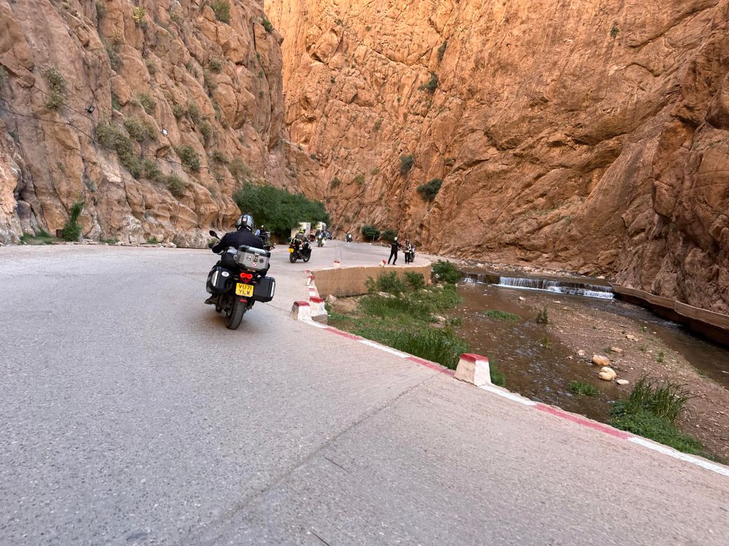 We exit the area through the huge Todra gorge. Steep walls and water flowing in the river.
