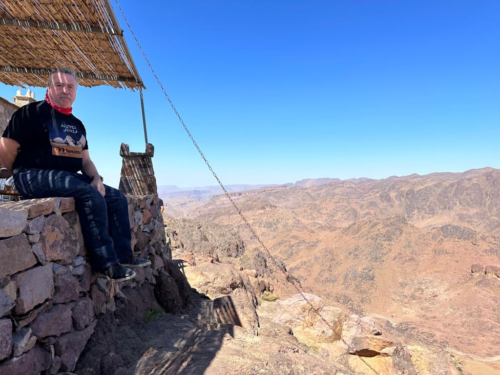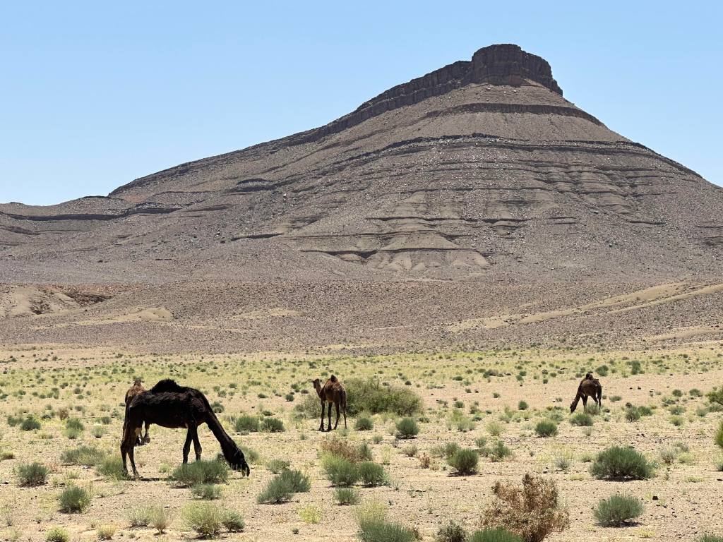 The road this morning is great riding. Curves winding up into the mountains. As we approach 2000m the plateau is covered in thin green foliage. Such a different look. We stop for a coffee at the top of a mountain pass, Djebelsarhro, 2300m. It is a pleasant 20degs.