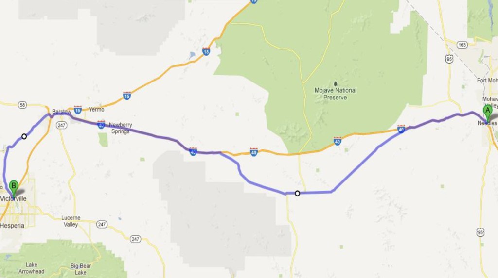 We crossover to California today, the final state on our legendary ride down Route 66. We cross the Devil’s Playground and ride along the Mojave Desert. A stop in the deserted town of Amboy with it’s population of 18 lets us wonder what it was like when Route66 was in it’s blooming years. From the desert we arrive in Victorville, where we overnight