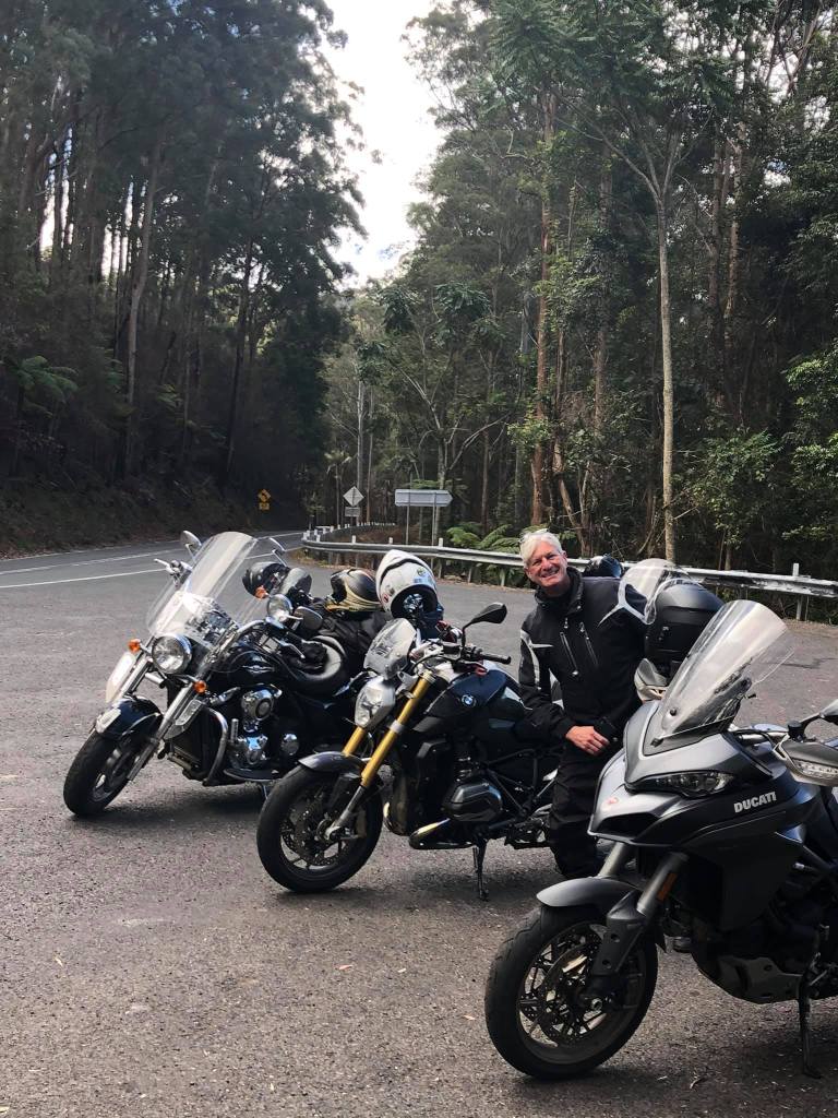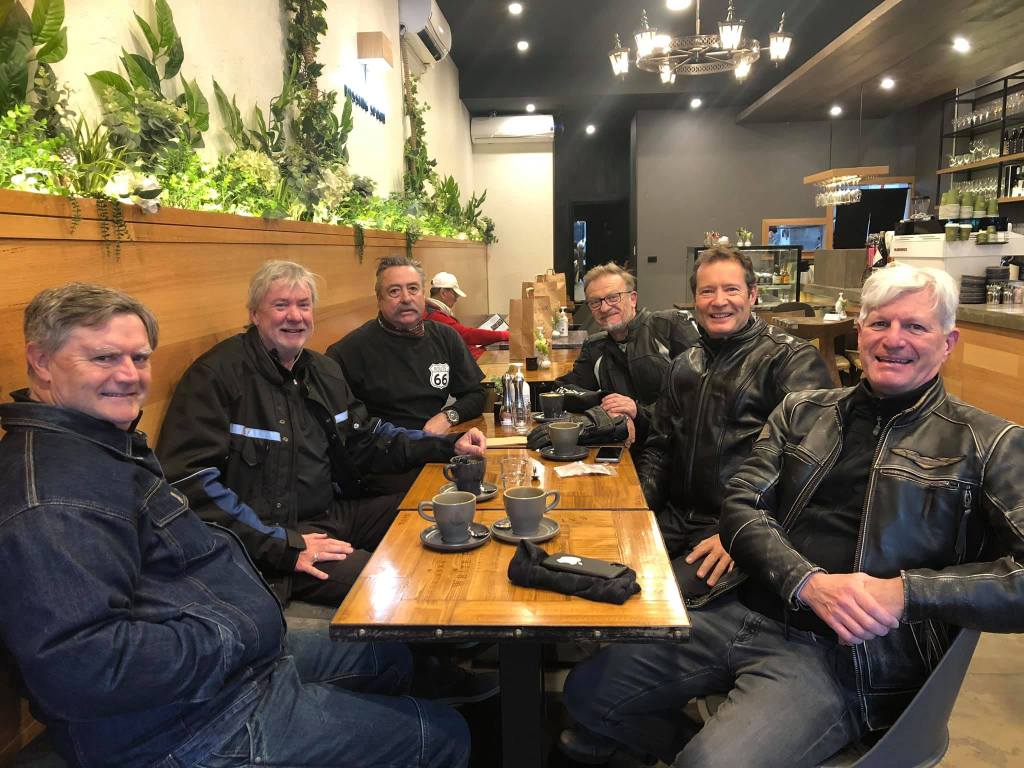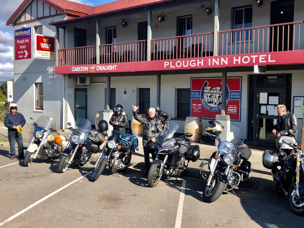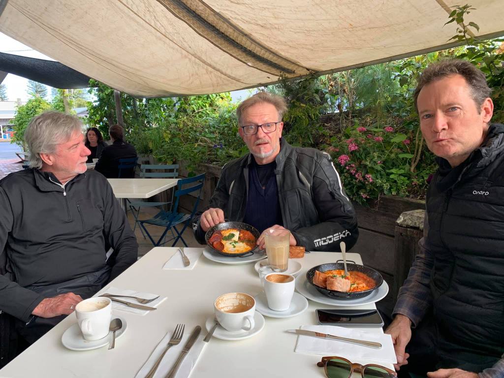 Scheduled 9am leaving but we’re all a bit skittish & ready to go early. Russ must have missed the call. He was using his fully allotted time. Bfast at the Old Butter Factory in Bellingen.It’s a crisp fine morning. We ride down the magnificent Waterfall Way (didn’t see any) & through Dorrigo NP to Armidale. Coffee. Pretty quiet in Armidale. Sun shining. Blue sky. Full layering as it is very cold at 140kmh.Next stage we set off to Guyra & then to Ebor. It’s fast & furious. Long undulating roads amongst brown fields. Gibbo back in the game. Leading with Russ & Singo on his tail. Boxy started with uncharacteristic aggression this morning before settling back some distance off the pace to escort Mike. Mike is on his cafe racer pushing it to its max. Always staying in touch with the lead pack. Stop at Ebor for a rest break. Mike’s battery is dead. Push starts for him until he gets a new battery. The ride from Ebor to Grafton is via the Dorrigo NP. A lot of the forest is recovering from fire. Roads are under construction so it’s a tough gig. Arrived Yamba about 4pm. Check into our beachside hotel. Mike parks his bike at the top of the hill ready for a rolling start in the morning. Dinner tonight at the Pacific Hotel overlooking the main beach. Mike gives us a family history of Yamba. Boxy rises to give a speech but everybody leaves the pub. Reflection of the Day – The Foxes do not believe there is any benefit in having nudey sauna‘a together.