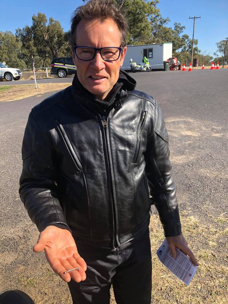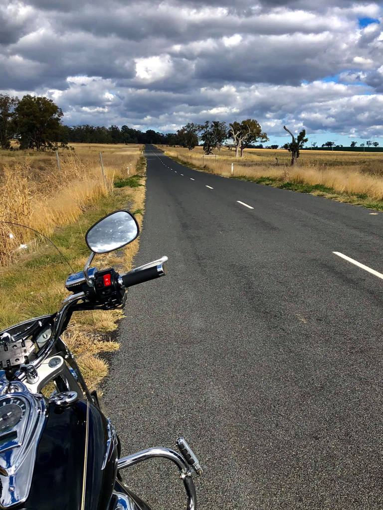 Ice on the seats this morning as we roll out of Inverell. Petrol stop & Mike acquaints with the Police in case he requires an emergency extraction. Bike still holding up. Rest at Copeton Dam. The temperature turns down. It’s