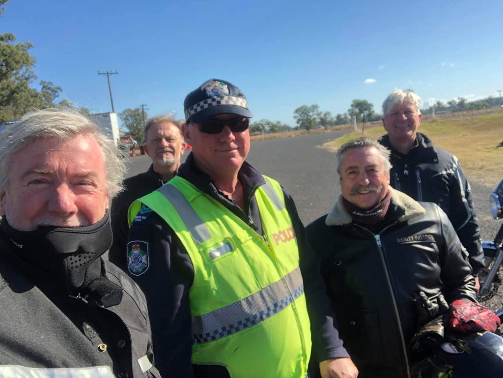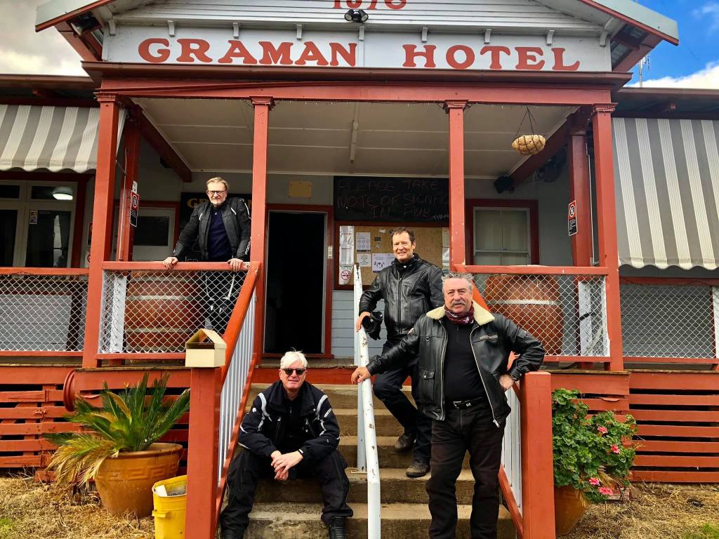 Bfast Tenterfield. “Best Coffee outside of Italy” maybe a bit of overreach. We hit the Bruxner Hwy on a crisp morning and head to Texas, just over the Qld border.We were met at the border by a combination of Police & Army. Very exciting. Our petition for a quick run into Texas 5 kms away was rejected. 9 days early. We are directed by the Police to an area to the side and detained for a couple of hours. The detention had nothing to do with our involuntary captivity but actually relates to the fact that Mike has collected a nail and has a flat tyre! Our Policeman agrees sternly to a selfie (& no one thought about social distancing!)A stocktake reveals a number of solutions to fix the tyre. Gibbo hard at work. Puncture fixed but tyre still flat. Russ produces his Qld entry permit (granted so he can visit his mother) with a view to taking Mike’s bike into Texas to get it pumped up. The Police are reluctant as he’s not going to visit his mother! Finally they assent.Upon his return, we head off toward a large town for a permanent fix. We Limp into Yetman. Nothing here except a house for sale (unlimited refurbish potential & Boxy has called it a bargain) & general store (bit grubby).Gibbo secures more air for Mike’s tyre in a garage that is unattended. Gibbo is holding this tour together single handedly. Hydro must be sitting back cacking himself.From here a Change of route. Straight to Inverell via Graman Hotel. Lunch at the Graman pub then into Inverell by 2.30. Looks like private time this afternoon.InverellInverell is a large town in northern New South Wales, Australia, situated on the Macintyre River, close to the Queensland border. It is also the centre of Inverell Shire. Inverell is located on the Gwydir Highway on the western slopes of the Northern Tablelands. It has a temperate climate. In the 2016 census, the population of Inverell was 11,660 and the Inverell Shire population was 16,483.After all this excitement we need Chinese food! The Sapphire Restaurant is a winner. Reflection of the day – why have we never considered the likelihood of, & preparation for, a flat tyre?? We cannot go on tour without a Gibbo or a Hydro!