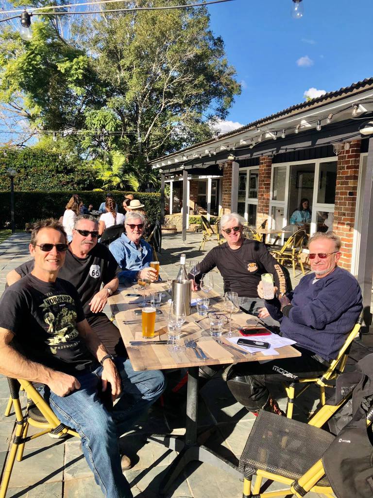 Met at Gordon Cafe for pre-trip planning at 7am. The participating Tour Members are Russ, Gibbo, Boxy, Grundy & Singo. Brother Pete has arrived and agreed to chaperone us as far as Buladelah. Whilst enjoying Egg & Bacon Rolls, Boxy advises that he needs to fill up before we go. He might as well have said “I’m a Banker”. The contempt was palpable. Silence prevailed. In his defense he explained that this is what we had all agreed. A first breach has been recorded before we have even commenced the trip – the Furnace Creek rule, “Don’t implicate your brothers in your misdemeanour “.We head up the highway & stop for a coffee at Buladelah. Lewy bids us adieu & heads home. Petrol refill so we are right til our destination, Bellingen. We fly north at full throttle. Gibbo is complacent up front so Singo assumes leadership. The Slim Dusty museum beckons but, alas, we pass. Oh no, Mike throws his hands in the air. Empty again. The cafe racer is struggling to maintain the pace. Fill again at Nambucca & straight on to Bellingen. Turn off the Highway on to Waterfall Way and we are in a beautiful valley. Arrive Bellingen Valley Lodge. Arrive at 2. Expected at 4. Luxury. A late lunch is served on the terrace. We watch the sun set. Conversation is broad .Dinner tonight is at the Federal Hotel, Bellingen. Call Stu, the local taxi driver. Start with a warm Gin. Biggest scandal of the evening was Russ omitting to collect the buzzer for our meals. We are upstairs and no one knows we are here! Great meal. Great wine. Non cheese cheese plate. Cassandra was a great host.