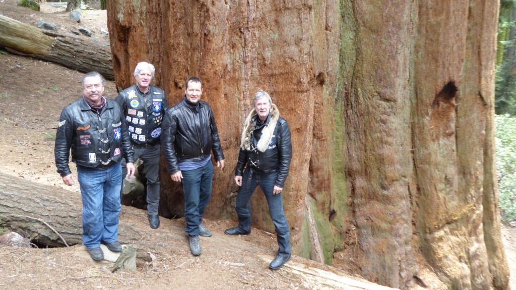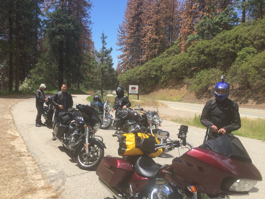 Rider meeting at 8.30 out front of the Dirty Donkey with a wolf dog. Important to keep Hydro pumped! Blue skies and forecast temperature of 20deg.Destination Bakersfield. We embarked on the Squaw valley route, aka Singo’s route – small curvy roads past lakes and into the mountains . Drive is magnificent. It is a complicated route but Hydro’s technology stands up to the test. Next stop Kings Canyon and Sequoia NP, the home of the redwoods. Lunch at a Wuksachi lodge in the mountains. CEO, Russ, decided to throw down his bike in disgust at its shit turning circle. He was heard to say, “it’s very heavy”. The Japanese tourists watching were intrigued to see how Aussies park their bikes!