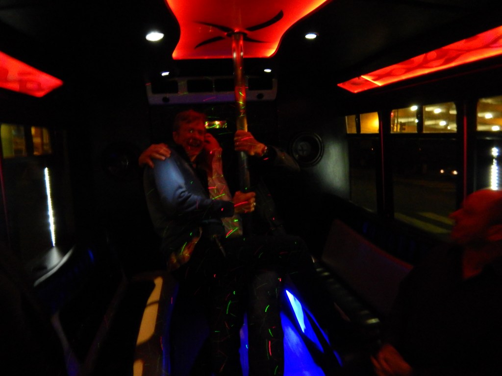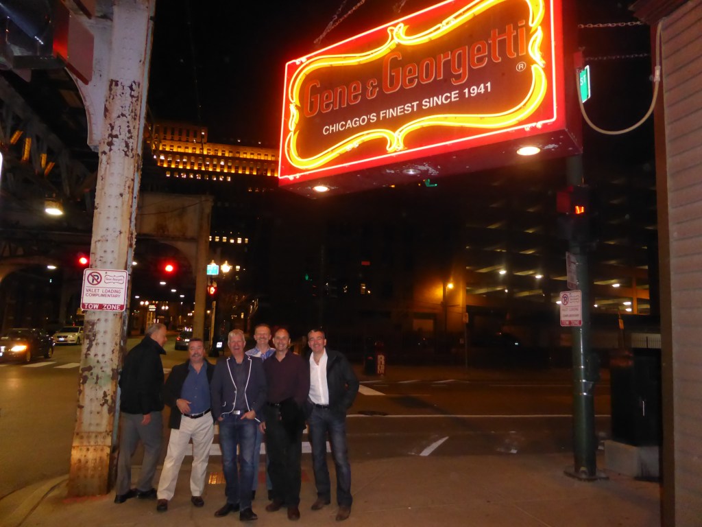 At 6, drinks with Andy & Petra (tour operators). Then to dinner at Gene & Georgetti for biggest steaks in the world. Somehow, we then ended up on a disco bus which took us to Kingston Mines, an iconic blues destination, where we ,,,,,,,,,,,,. Got home at 2.30am after a very successful night. Tour is exceeding expectations