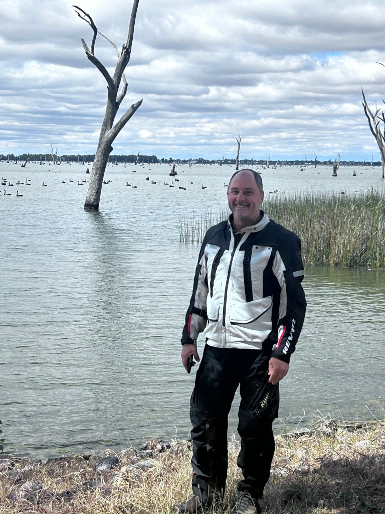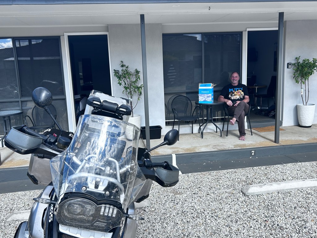 It was decided that the tyre would be pumped & we carry on for another 80kms to Albury, our destination for the night. We rode slowly in convoy but sped up toward Albury as confidence grew. We made it to our lodging, the Seaton Arms Motor Inn about 5pm. Russ was able to locate a new tyre which will be fitted in the morning.
