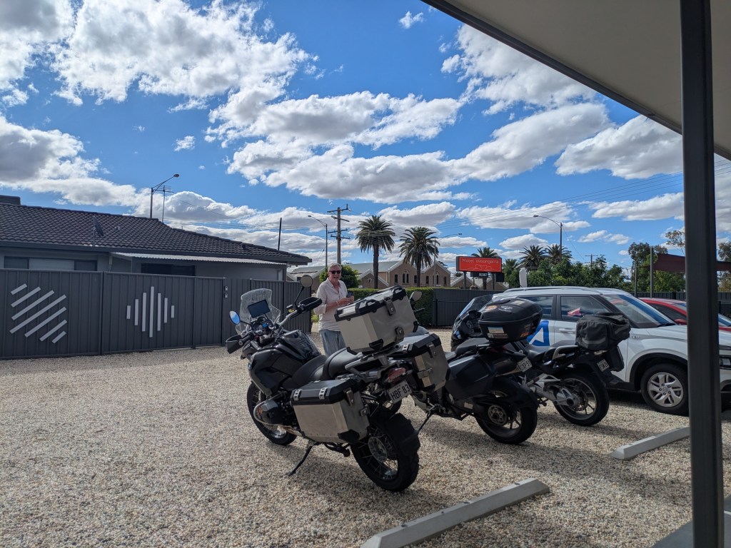 Wheels up at 7.30am. The track to Berrigan could best be described as flat & yellow. We were riding through some of the finest wheat country. It was 2 hours to Berrigan.
