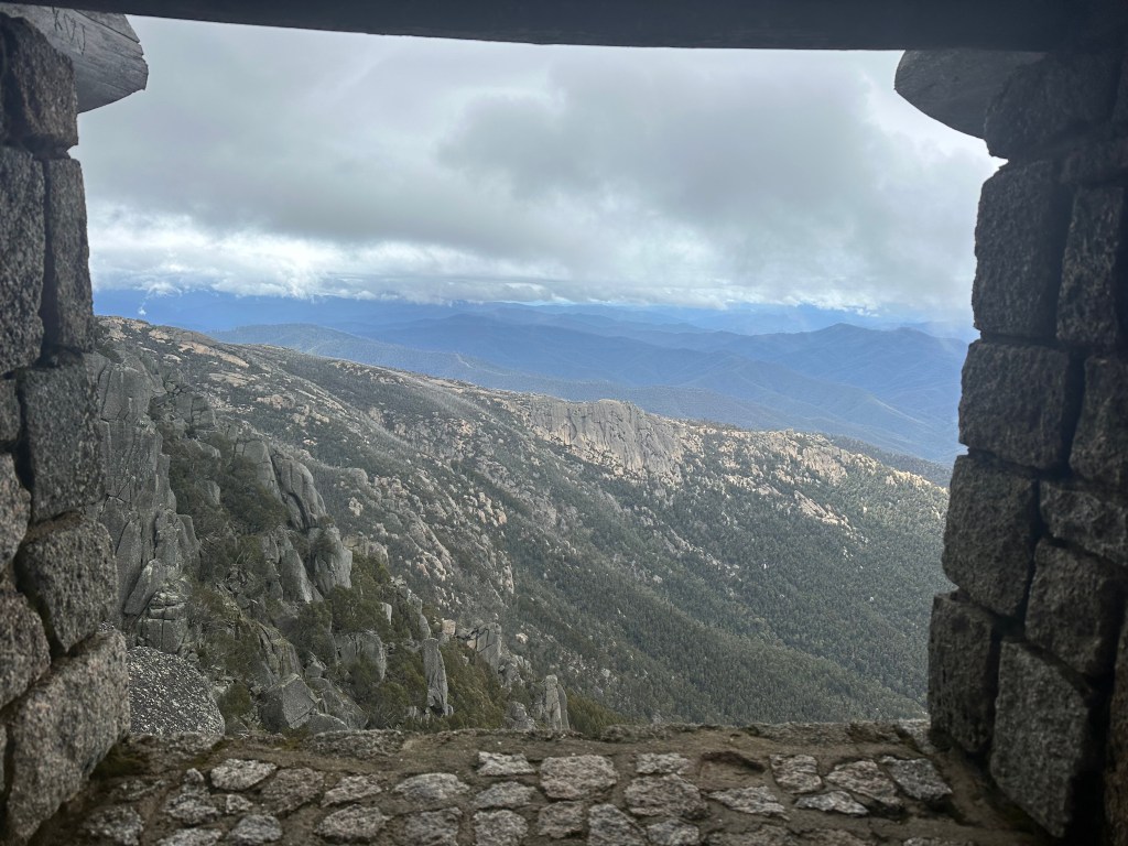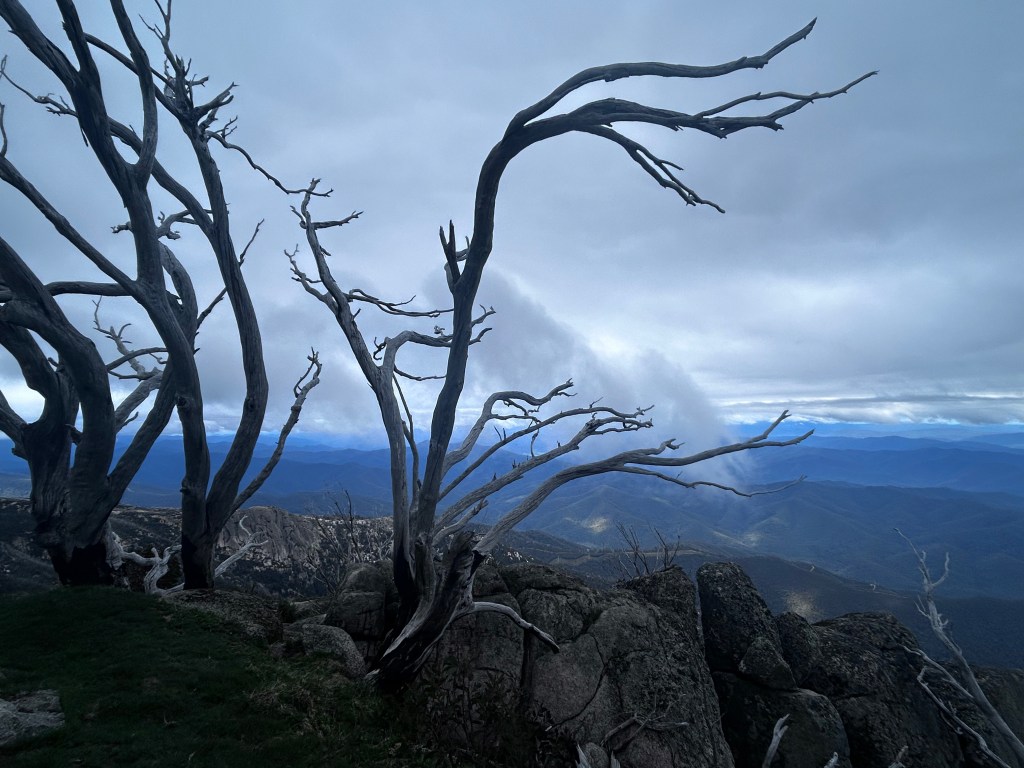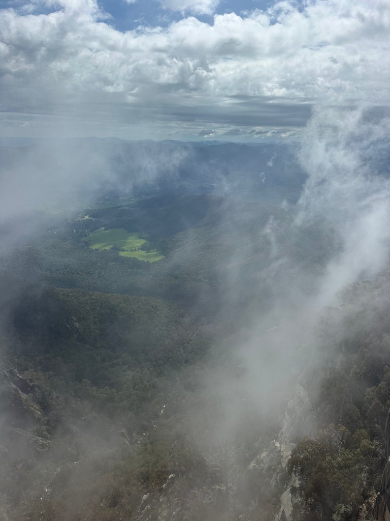 Next stop Mt Hotham. It was a whiteout. Visibility was 10m and we crawled across the top of the Ranges. It was freezing with ice on the roadside. It was a relief to descend into the warmer climate.