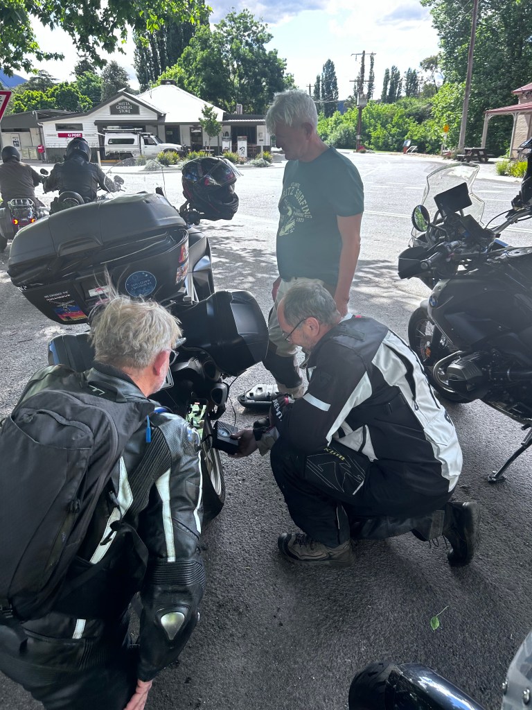 The Lightning Creek Track Incident: It was soon thereafter that Russ started waving his arms around & we pulled over. His steering was “off” so he rode forward while Singo followed as observer. One minute later the steering problem was resolved – a flat rear tyre. We pulled over onto the next turnout.