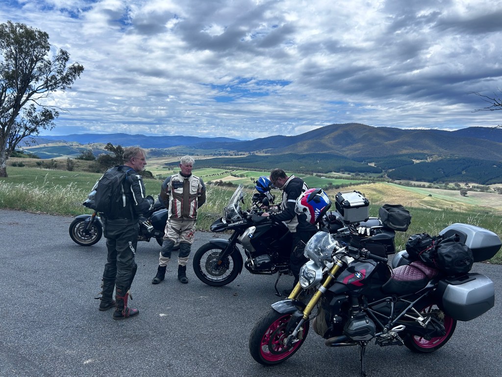 We left Omeo & turned North toward Mitta Mitta. The route took us through a number of valleys. The scenery was rich & green (magnificent) producing the most shiny cows & horses we’ve ever seen. The road was seriously curvacious which caused a rupture in the group of 4 who until this point had been riding together.