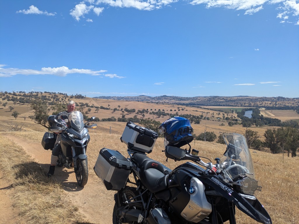 We had a quick bite and continued to Brungle, another sensory ride with creeks, willows & black cows. At Brungle, the Gibster & Singo headed for sealed roads to Gundagai and then up the Hume Hwy to Yass. Hydro & Russ carried on through the valley and some dirt roads to Jugiong before heading to Yass.