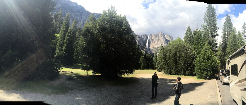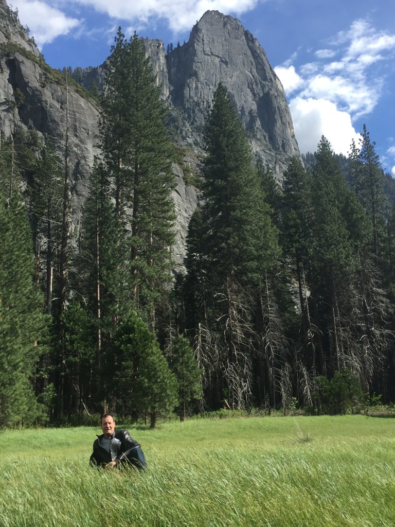 Leader Hydro (still in training) took a couple of wrong turns which however, turned out to be right turns. Yosemite NP greeted us with pine tree covered mountains until we found ourselves in Yosemite valley, the real Jurassic park. Rock formations are mighty big. Lots of photos. Mike got the male model shot of the day.