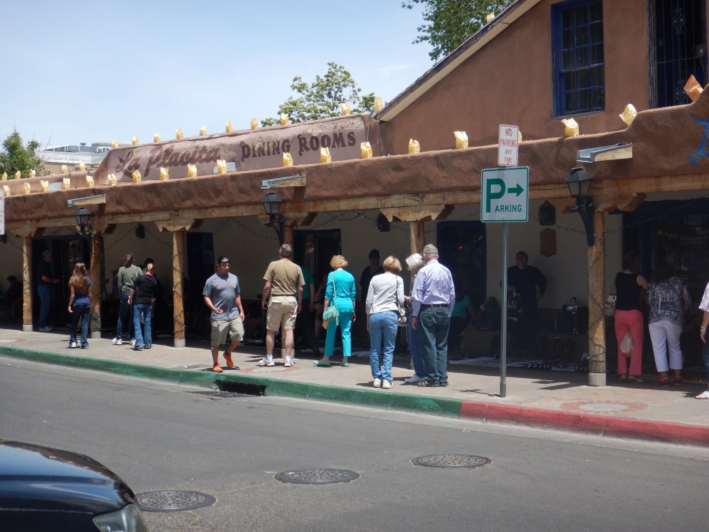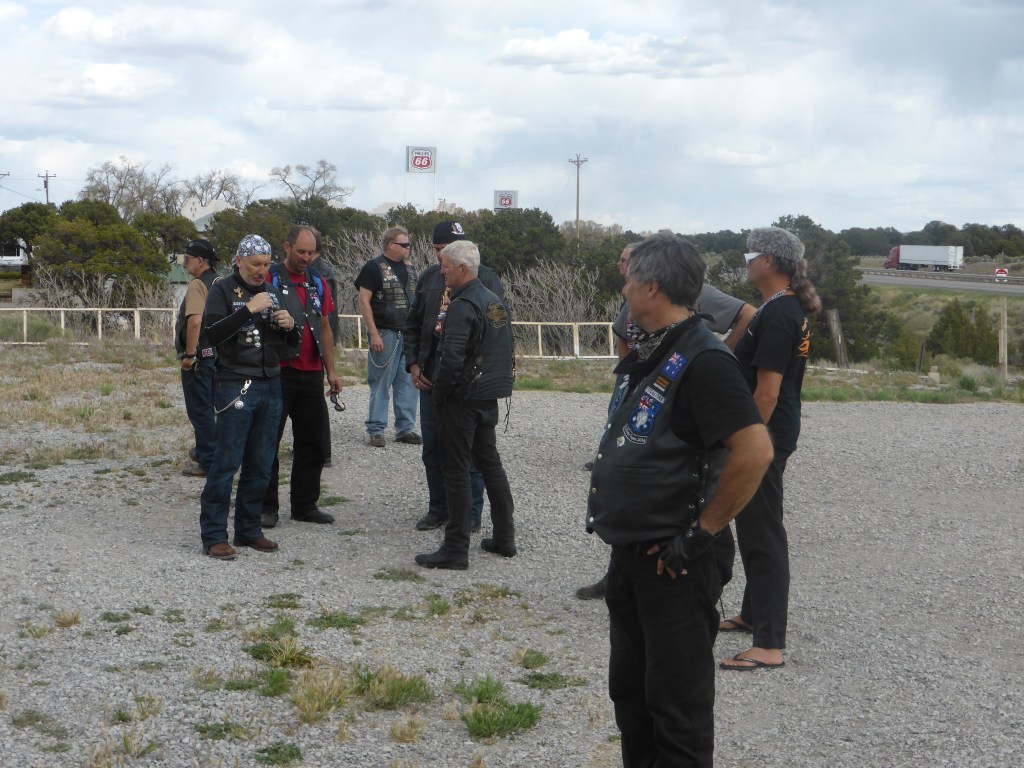 Lunch was at the Church Street Cafe in Albuquerque then onwards to the Continental Divide (?) for more photos of cowboy country. We rode on beside the red hills to our destination, Gallup. Two bikes from a competing tour crashed on the hills and head scans and stitches required. We are grateful for the extreme professionalism of Bear. We are well organised and disciplined.