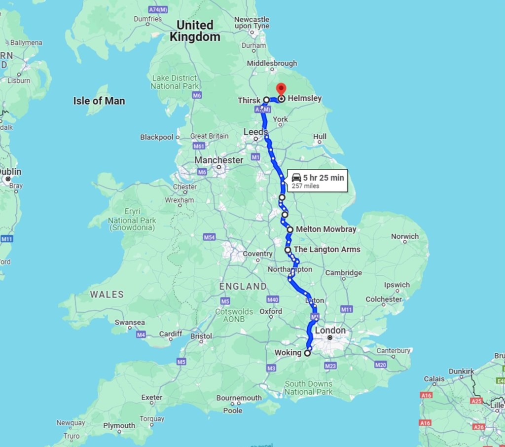 Arrived Helmsley at 4.30, Feathers Inn. Settled in….almost. Tour Leader Tony has a large room, thats good. Its adjacent to the boiler room. Thats bad. An email is shot off to the organisers & Tony receives a complimentary bottle of wine & a new room about the size of a shoe box. Then drinks in the beer garden. Tonys leadership is acknowledged as exemplary given his system broke down. We identified one near fuckup but it was recovered.