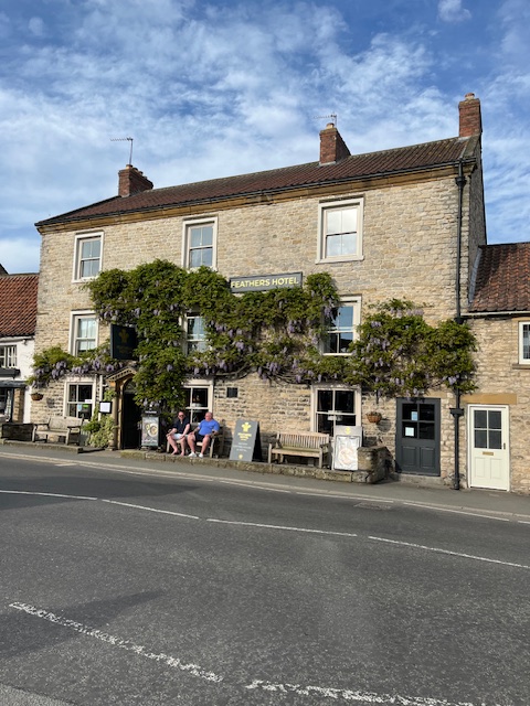 Dinner at the Feathers tonight. We start with a drink outside in the square. Hydro almost lands a driving companion but she prefers to holiday with her mother. Dinner is a raucous affair (as described by the other patrons).