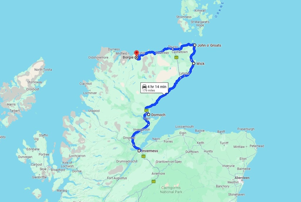 After lunch, we are Borgie Bound, about 1.5 hrs to go. A short stop at Castle Mey & gardens & then a final run in along curving flat roads. The Borgie Lodge is well located in a quiet valley.