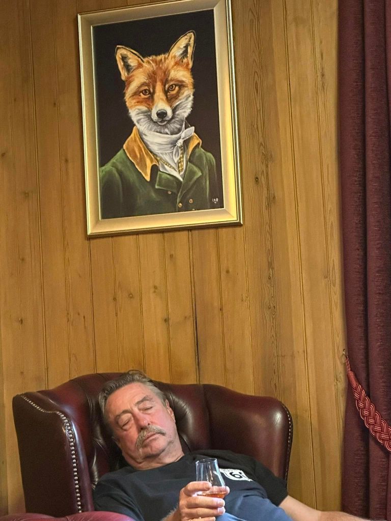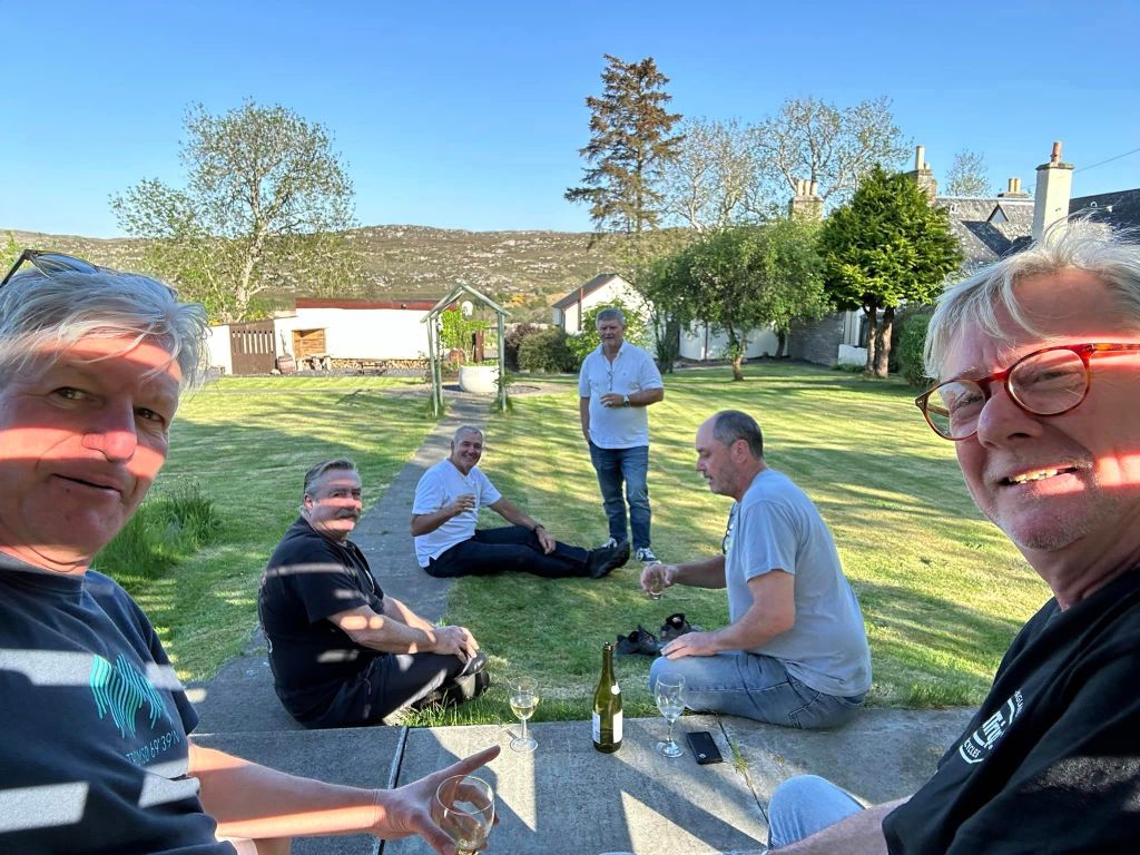 The Borgie Lodge is well located in a quiet valley. Drinks in the walled garden followed by dinner in the Hotel restaurant. A feast of venison followed by drinks & music in the Foxes Den. One of the Foxes found the whole thing exhausting!
